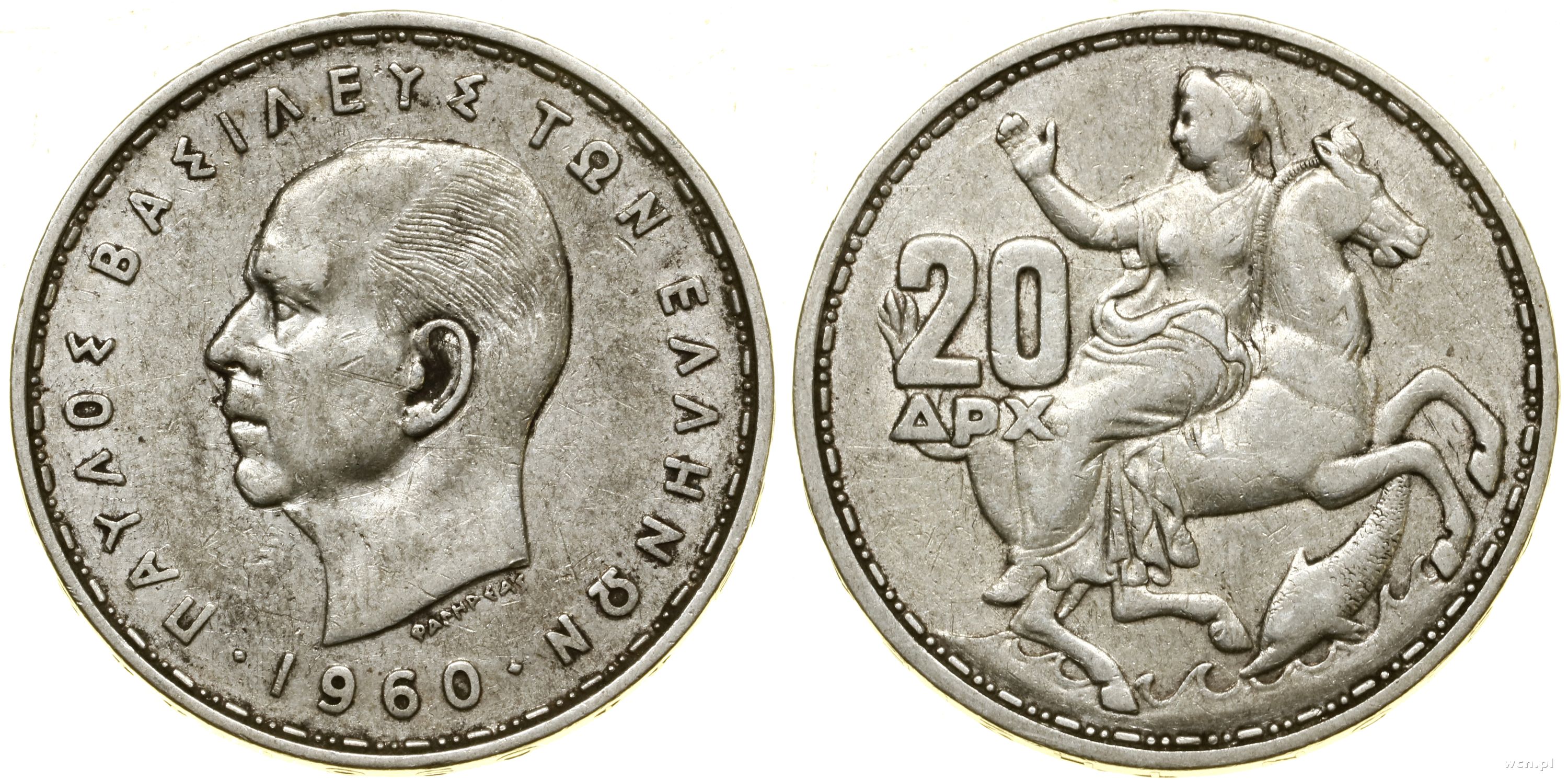 zestaw 3 monet w skład zestawu wchodzi 20 drachm 1960 oraz 10 drachm 1959