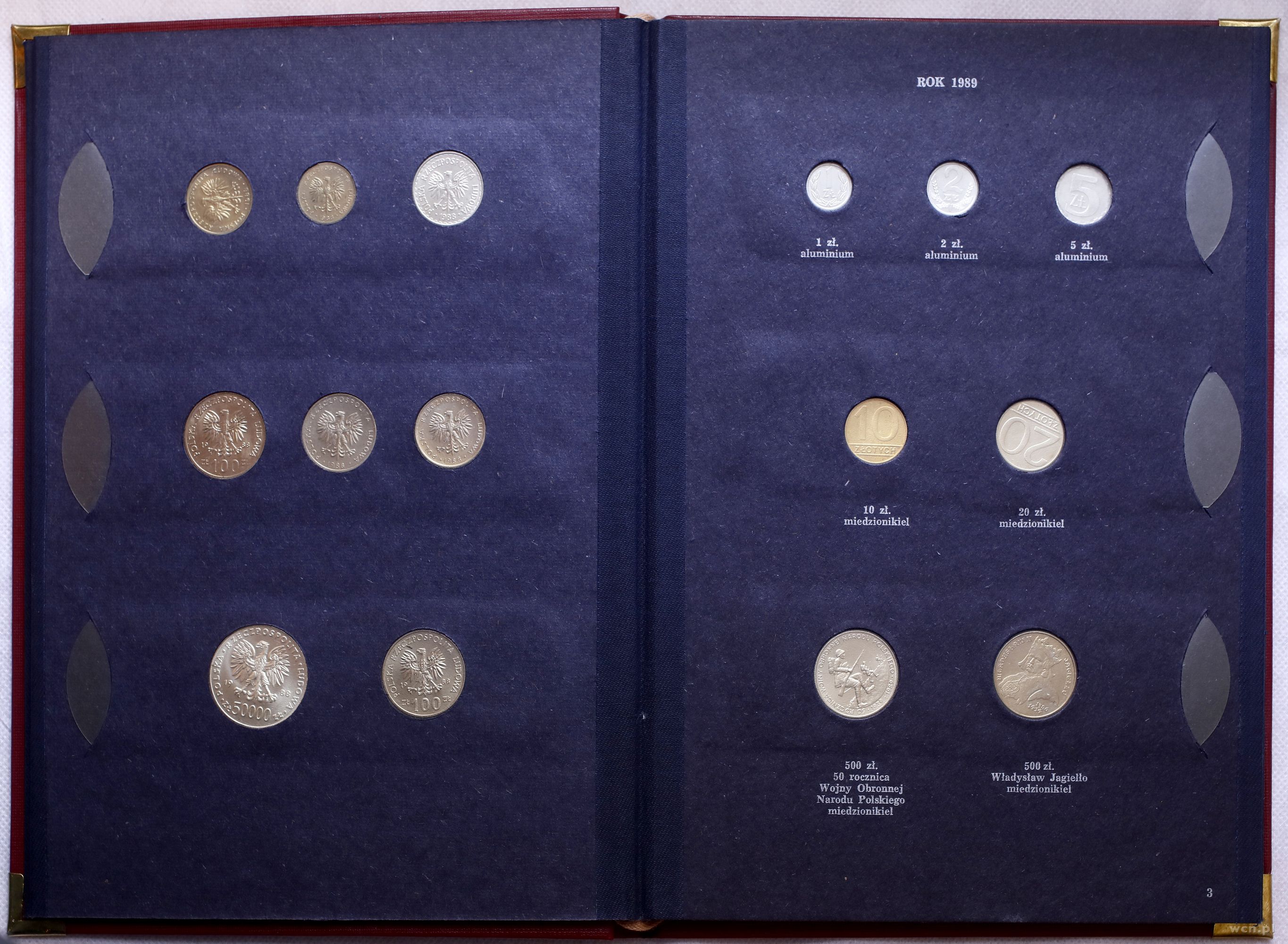 klaser z monetami polskimi z lat 1987–1990 Warszawa