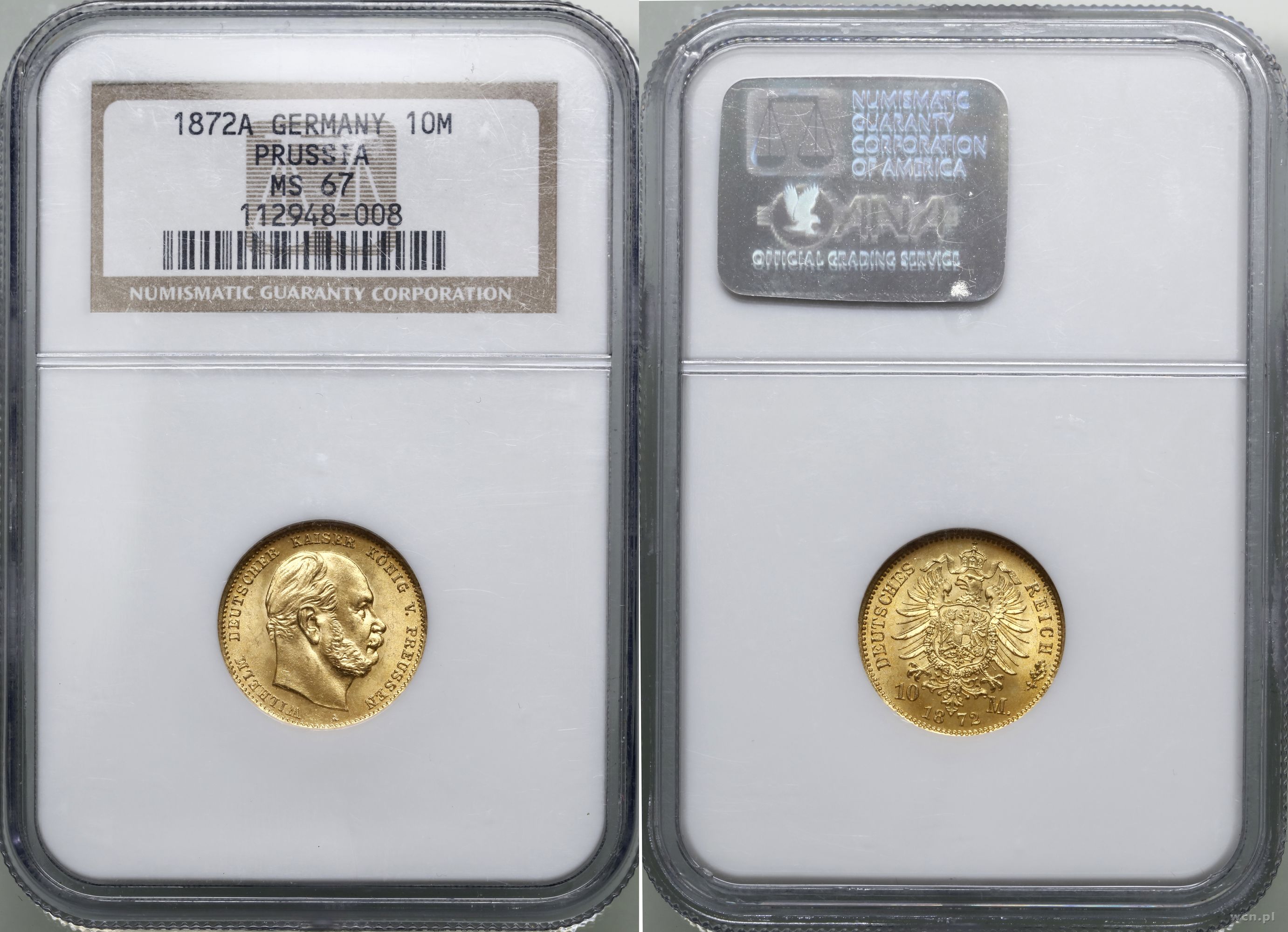 Opis: | Niemcy, Prusy – królestwo (1701–1918) - Wilhelm I (1861–1888), 10 marek 1872 A, Berlin, wyśmienicie zachowane , w opakowaniu firmy NGC nr 112948-008 z oceną MS67, AKS 111, Fr. 3819, Jaeger 242 |