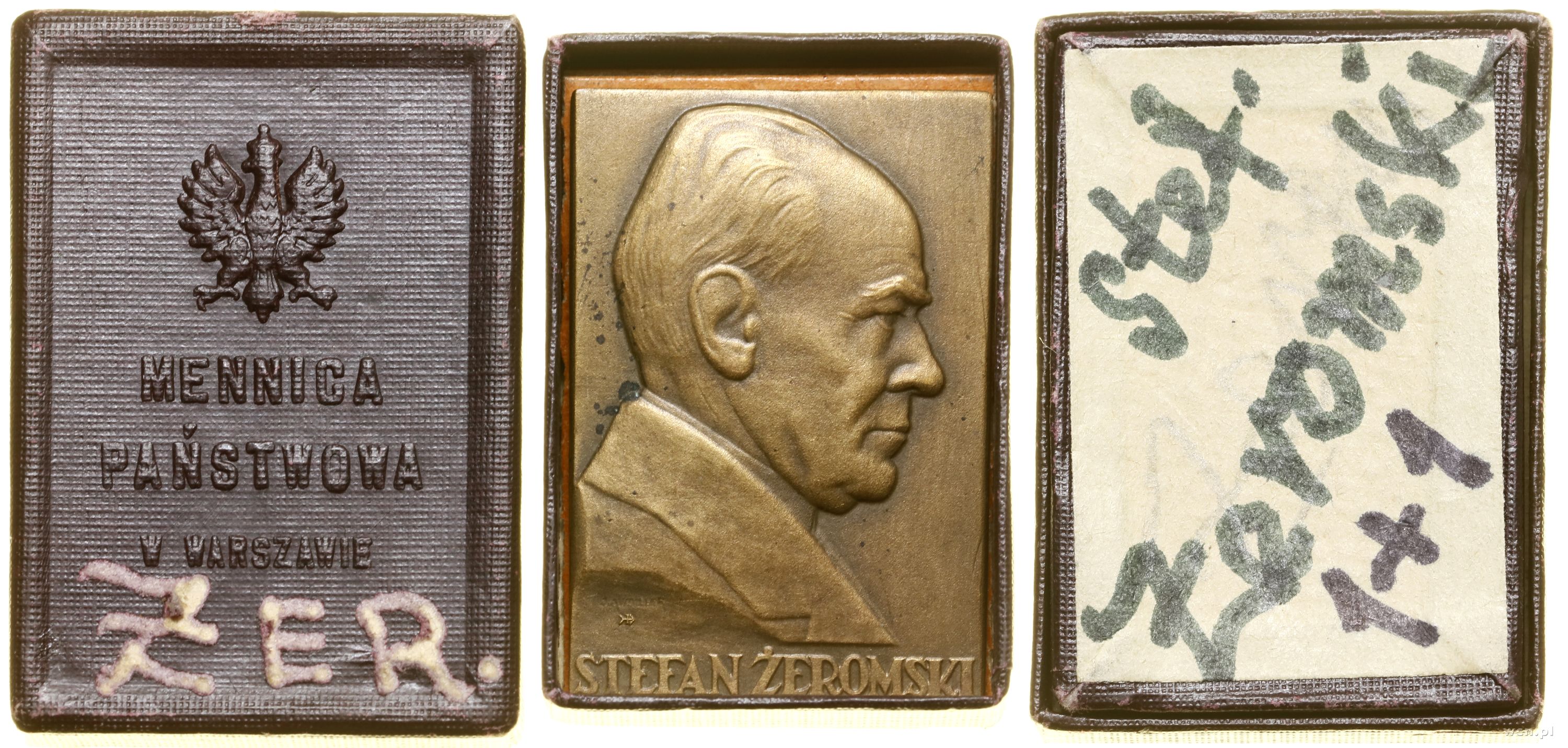 Opis: | Polska, XX w. - II Rzeczpospolita Polska (1918–1939), Stefan Żeromski 1926, Warszawa, Popiersie w prawo, niżej STEFAN ŻEROMSKI, projektował Józef Aumiller, brąz, 26.9 x 39.0 mm, 16.49 g, patyna, plakieta w oryginalnym, tekturowym pudełku Mennicy Warszawskiej z uszkodzonym wieczkiem, Strzałkowski-Plakiety 10.a |