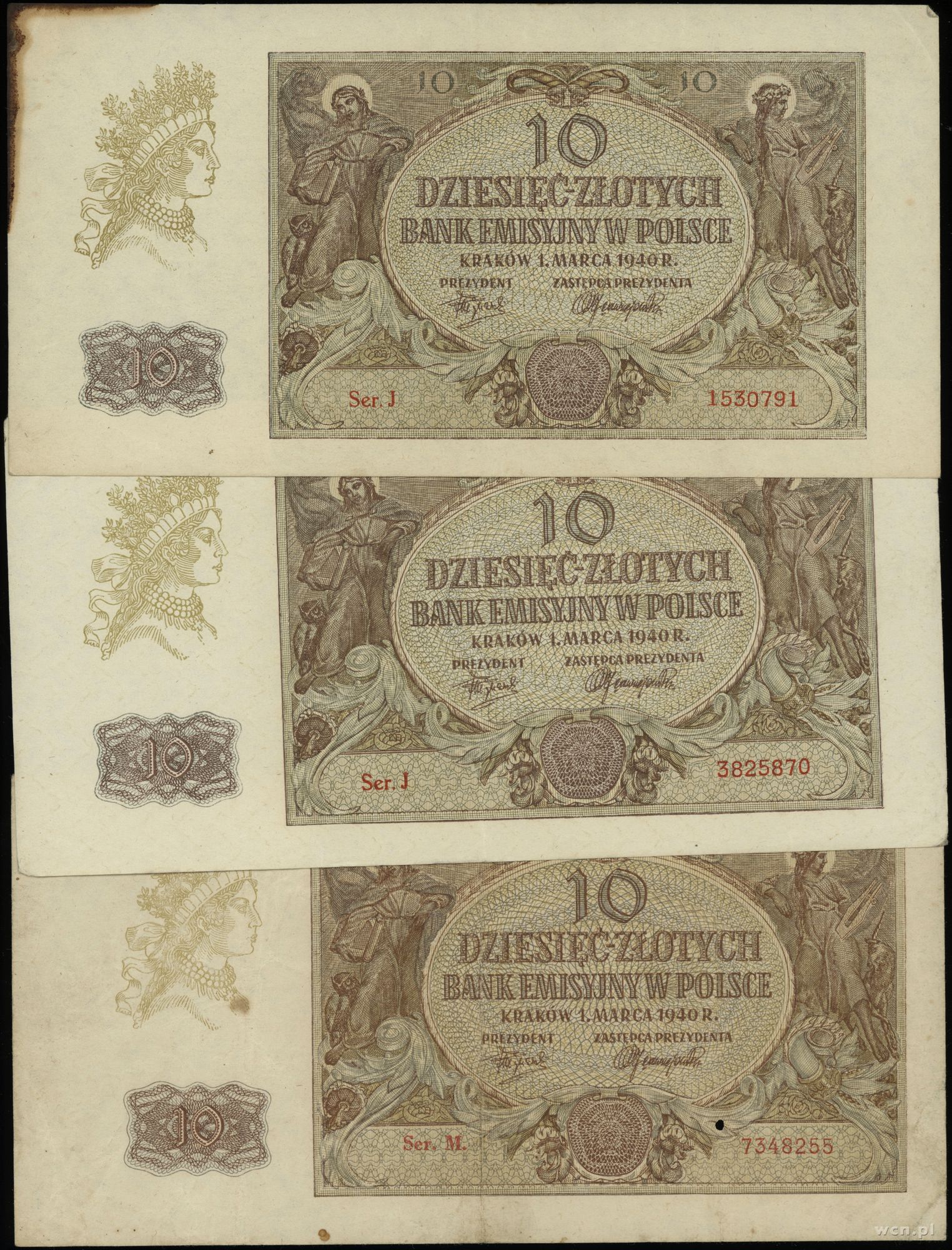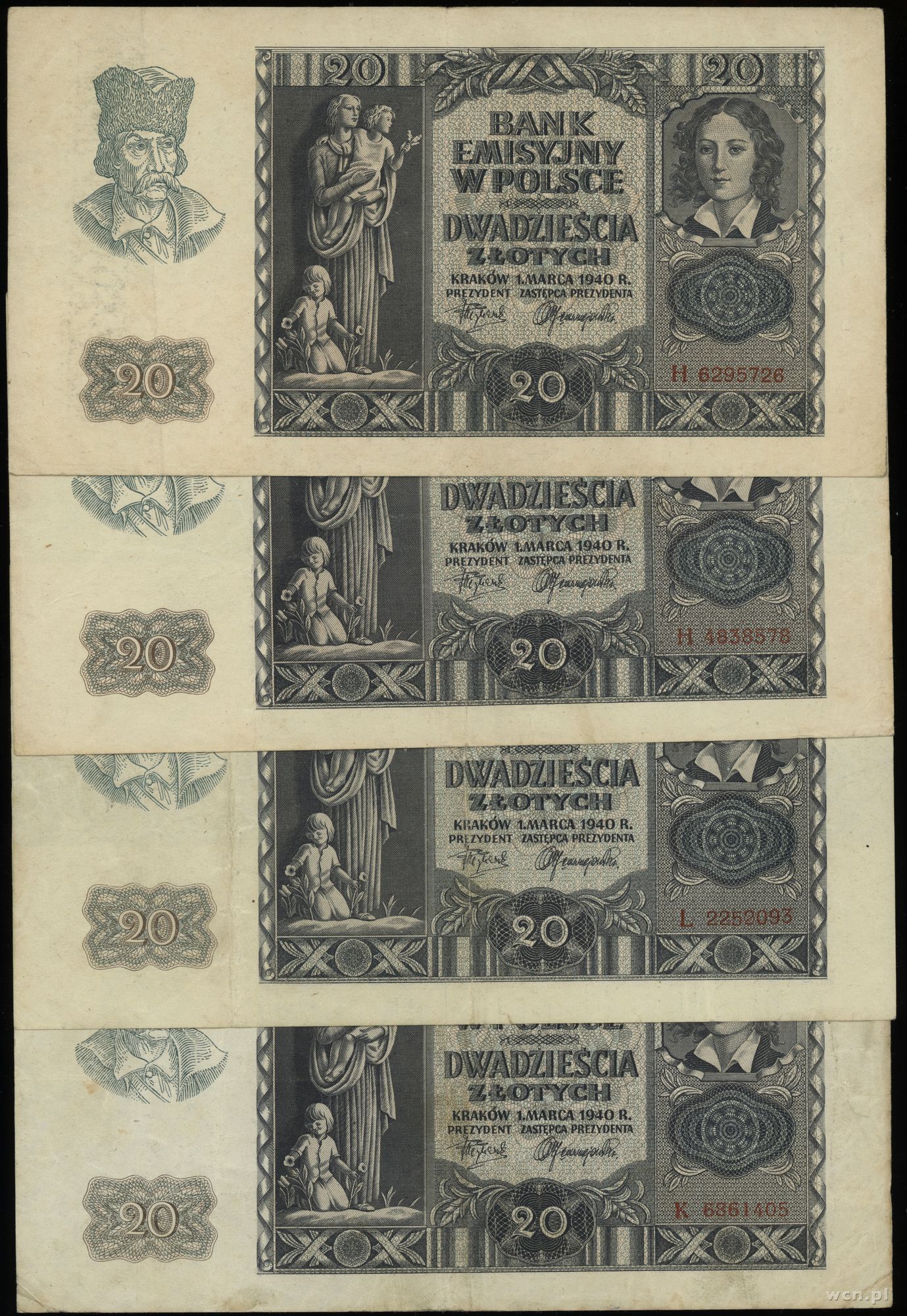 Opis: Polska, Generalna Gubernia (1939–1945) - Bank Emisyjny w Polsce, zestaw 9 banknotów 1.03.1940, w zestawie: 2, 5, 3 x 10, 3 x 20 oraz 500 złotych, razem 9 sztuk, Lucow 770–801, Miłczak 92–98