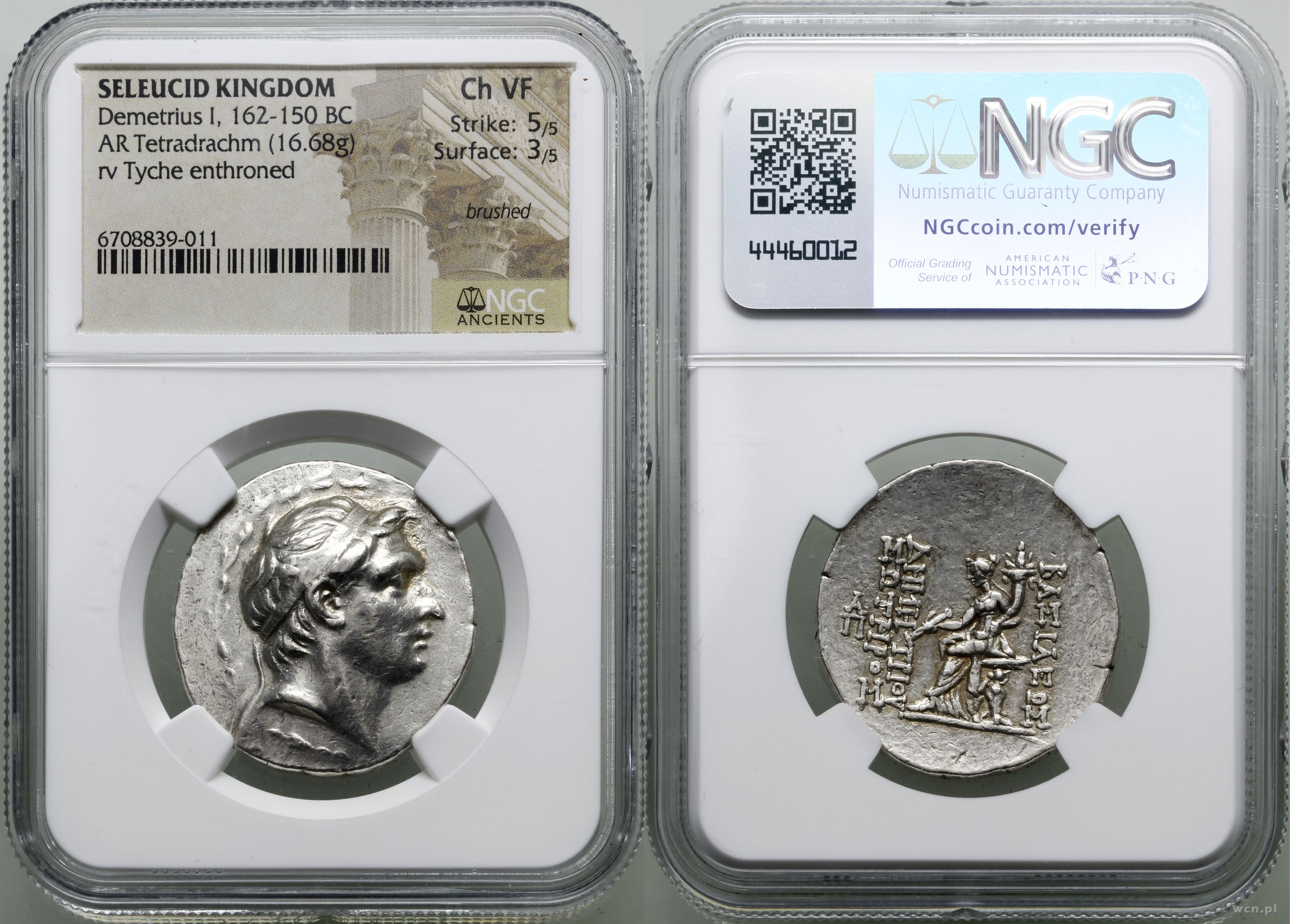 Opis: | Grecja i posthellenistyczne, Syria - Demetriusz I Soter (162–150 pne), tetradrachma 162–150, Antiochia, Aw: Głowa władcy w prawo; Rw: Róg obfitości, po bokach ΒΑΣΙΛΕΩΣ ΔΗΜΗΤΡΙΟΥ ΣΩΤΗΡΟΣ, srebro, ładnie zachowana moneta , w opakowaniu firmy NGC nr 6708839-011 z oceną Ch VF 5/3 3/5, BMC IV/47/33 |