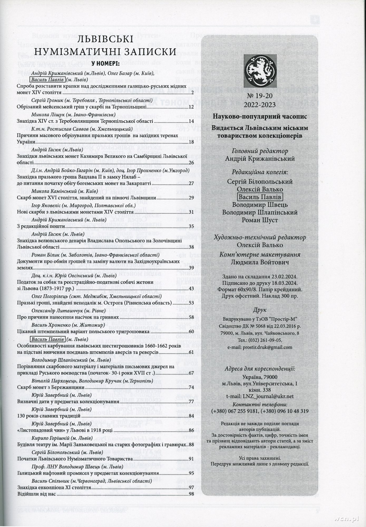 Львiвськi нумiзматичнi записки (Lwowskie Zapiski Numizmatyczne) nr 19–20/2022–2023