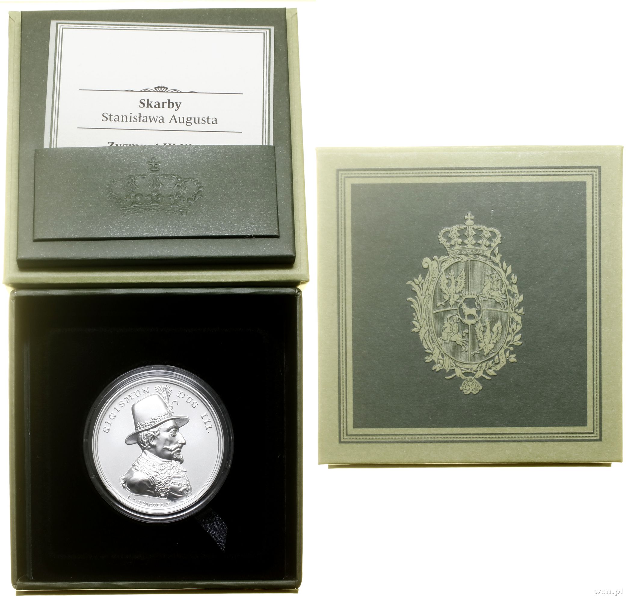 Opis: | Polska, III Rzeczpospolita Polska (od 1989) - monety kolekcjonerskie, 50 złotych 2020, Warszawa, Skarby Stanisława Augusta – Zygmunt III Waza, srebro próby 999, ok. 62.2 g, nakład do 5.000 sztuk, moneta w plastikowym kapslu, ozdobnym pudełku z etui, z certyfikatem, Parchimowicz 1488 |