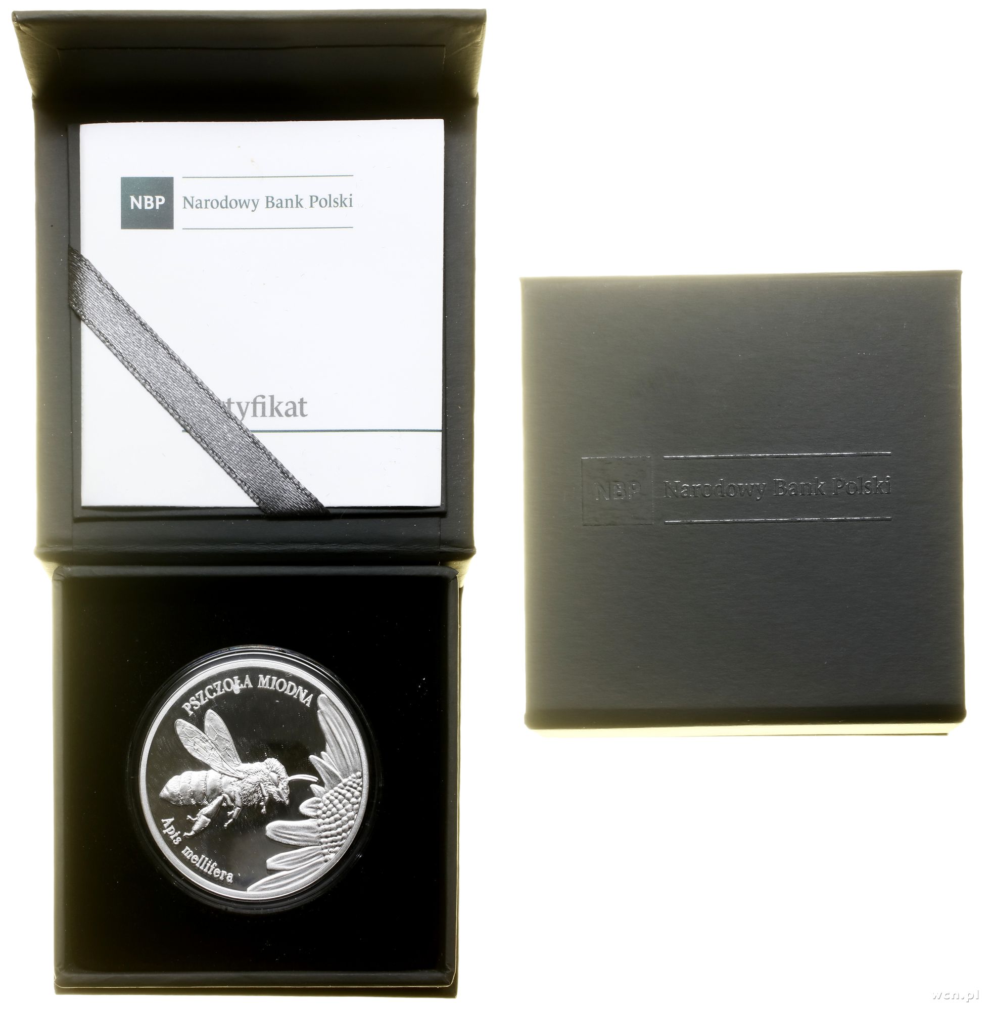 Opis: Polska, III Rzeczpospolita Polska (od 1989) - monety kolekcjonerskie, 20 złotych 2015, Warszawa, Zwierzęta Świata – Pszczoła miodna, srebro próby 925, ok. 28.28 g, stemple lustrzane, nakład do 15.000 sztuk, moneta w plastikowym kapslu i pudełku NBP z certyfikatem, Parchimowicz 1345