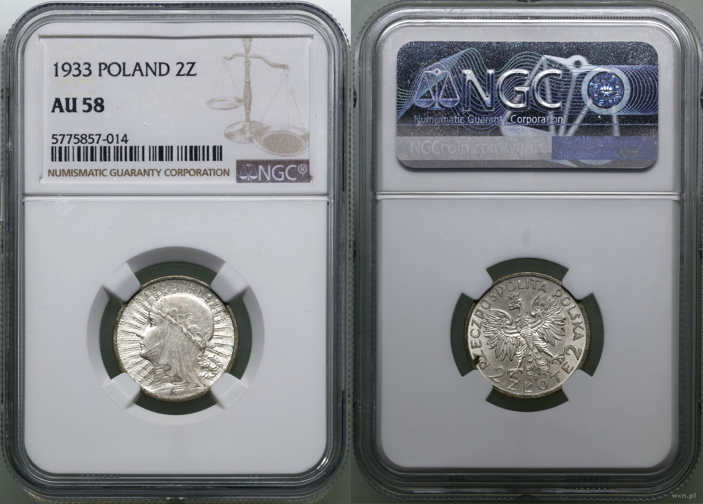 Opis: | Polska, II Rzeczpospolita Polska (1918–1939) - monety obiegowe, 2 złote 1933, Warszawa, głowa kobiety w czepcu, bardzo ładne , w opakowaniu firmy NGC nr 5775857-014 z oceną AU58, Parchimowicz 110b |