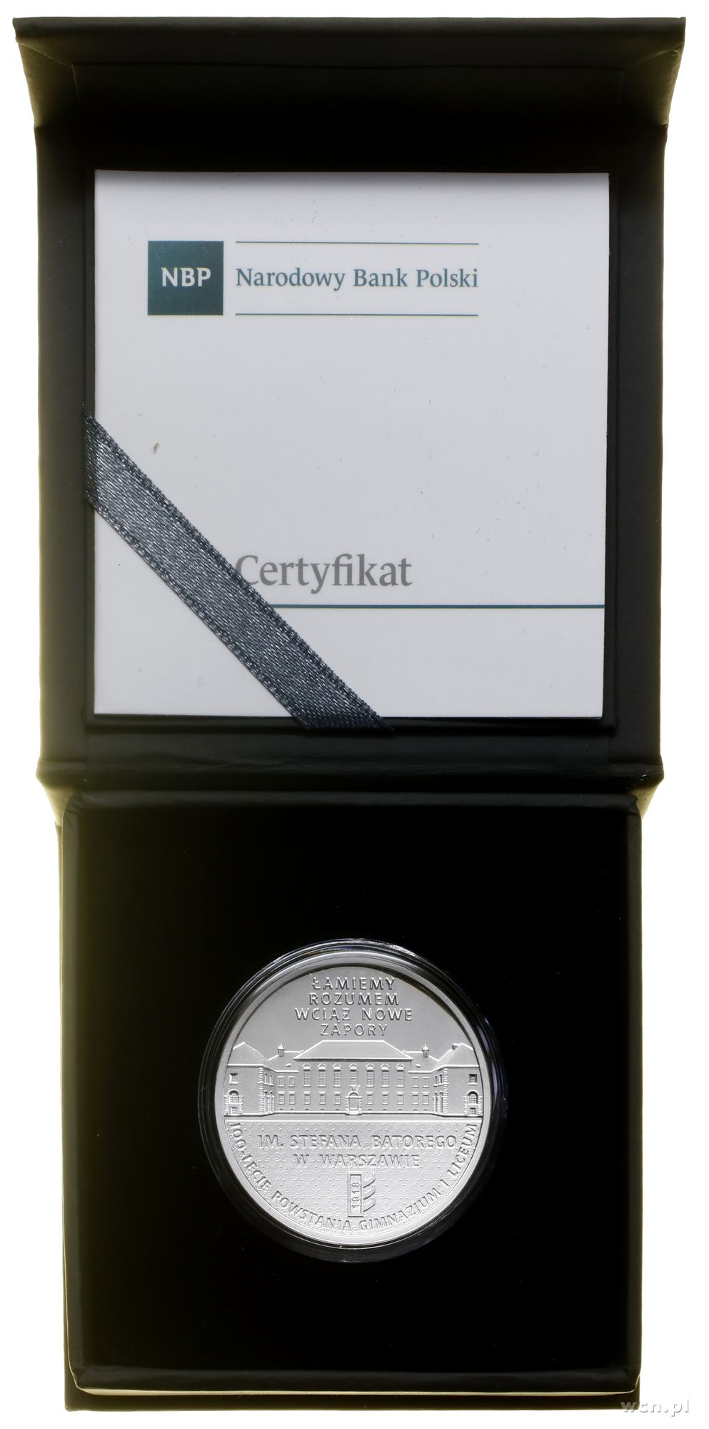 | Opis: | Polska, III Rzeczpospolita Polska (od 1989) - monety kolekcjonerskie, 10 złotych 2018, Warszawa, 100-lecie powstania Gimnazjum i Liceum im. S. Batorego w Warszawie, srebro próby 925, nakład 15.000 sztuk, stemple lustrzane, piękna moneta w plastikowym kapslu i pudełku NBP z certyfikatem, Parchimowicz 1417 |