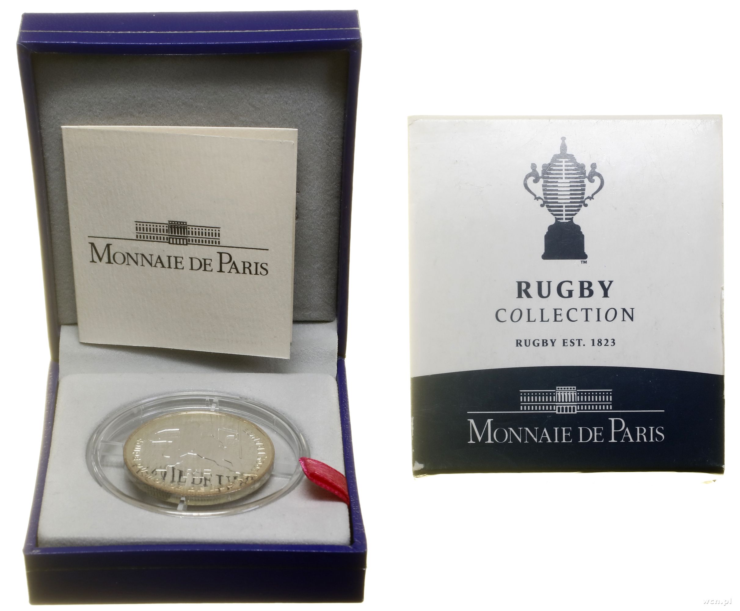| Opis: | Francja, V Republika (od 1958), 1/4 euro 2007, Paryż, Mistrzostwa Świata w Rugby , srebro próby 900, 13.0 g, nakład 5.000 sztuk, moneta w pudełku z certyfikatem numer 3594, KM 1483 |
