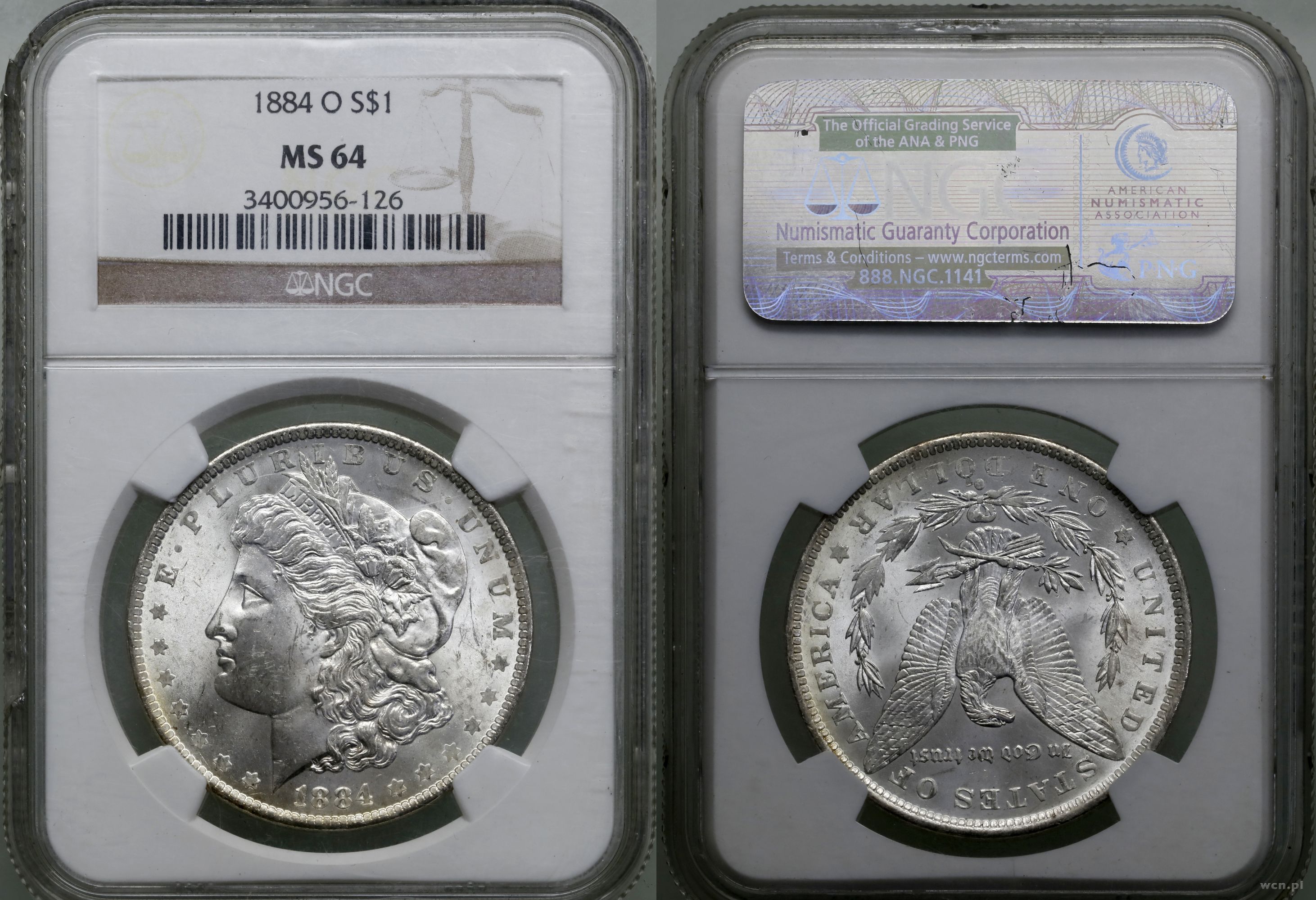 | Opis: | Stany Zjednoczone Ameryki (USA), 1 dolar 1884 O, Nowy Orlean, typ Morgan, piękne , w opakowaniu firmy NGC nr 3400956-126 z oceną MS64, KM 110 |