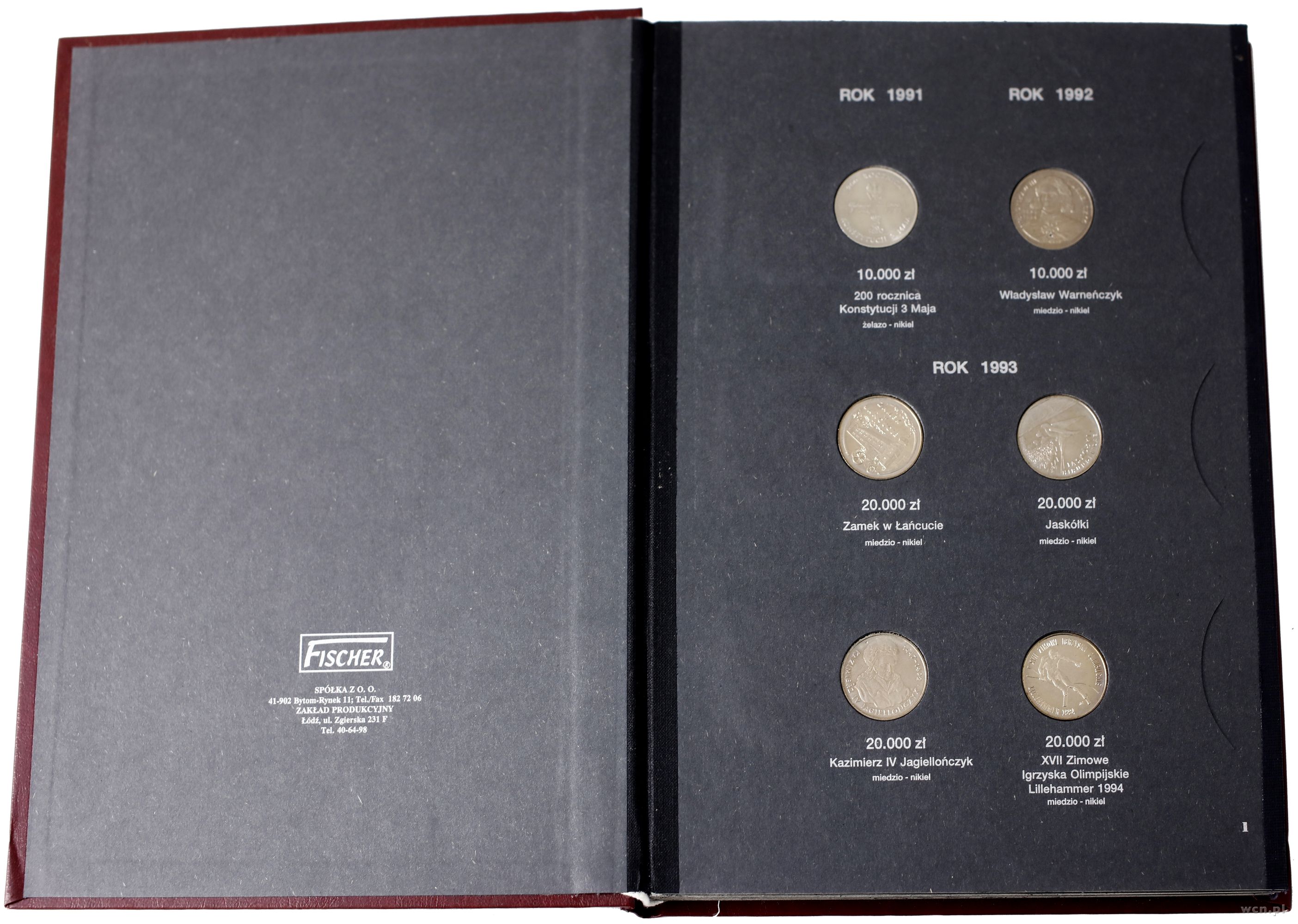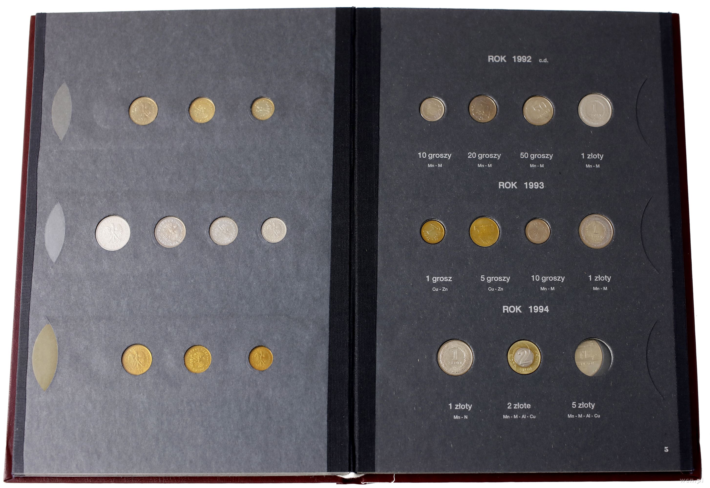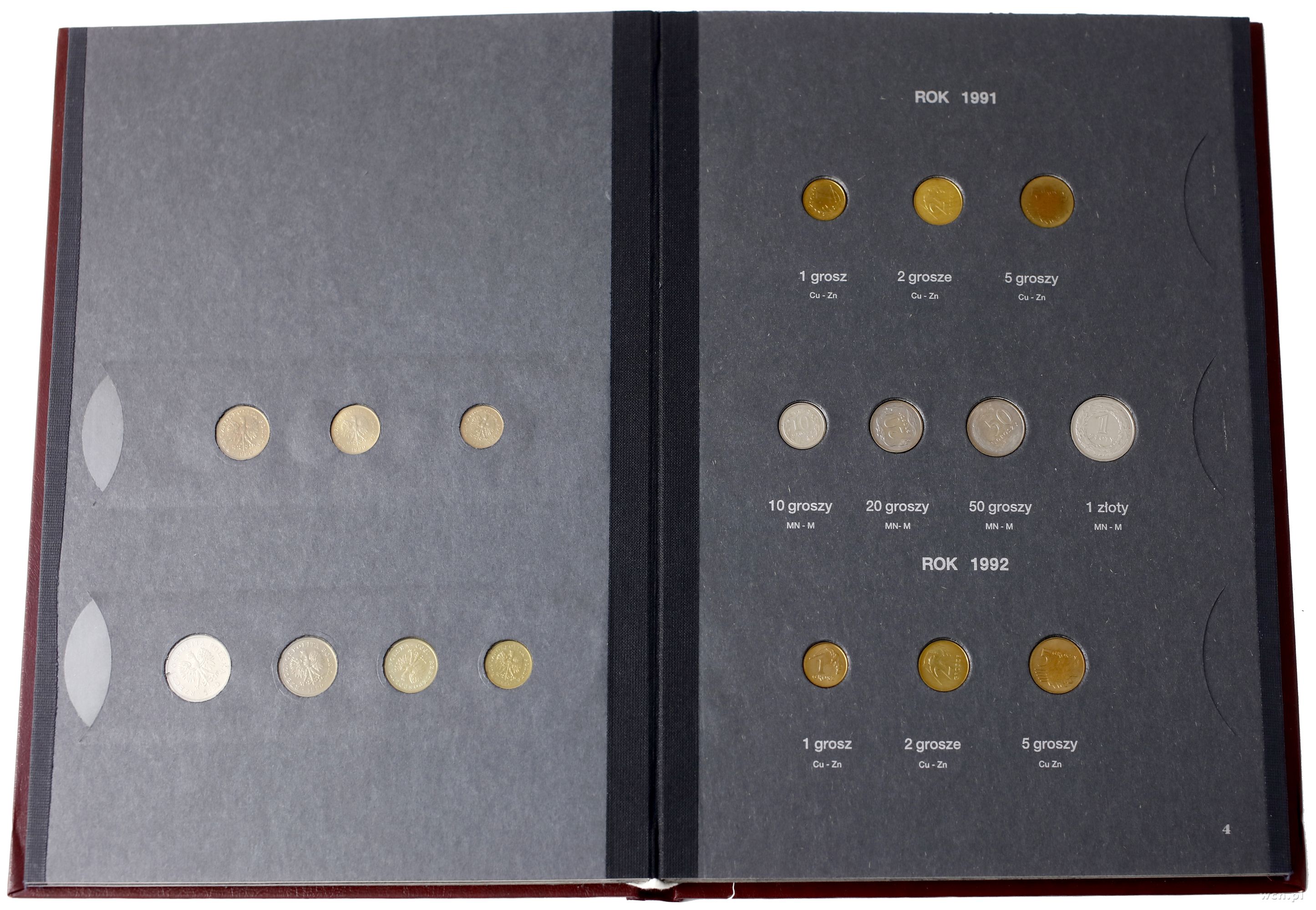 klaser z monetami polskimi z lat 1990–1995 Warszawa