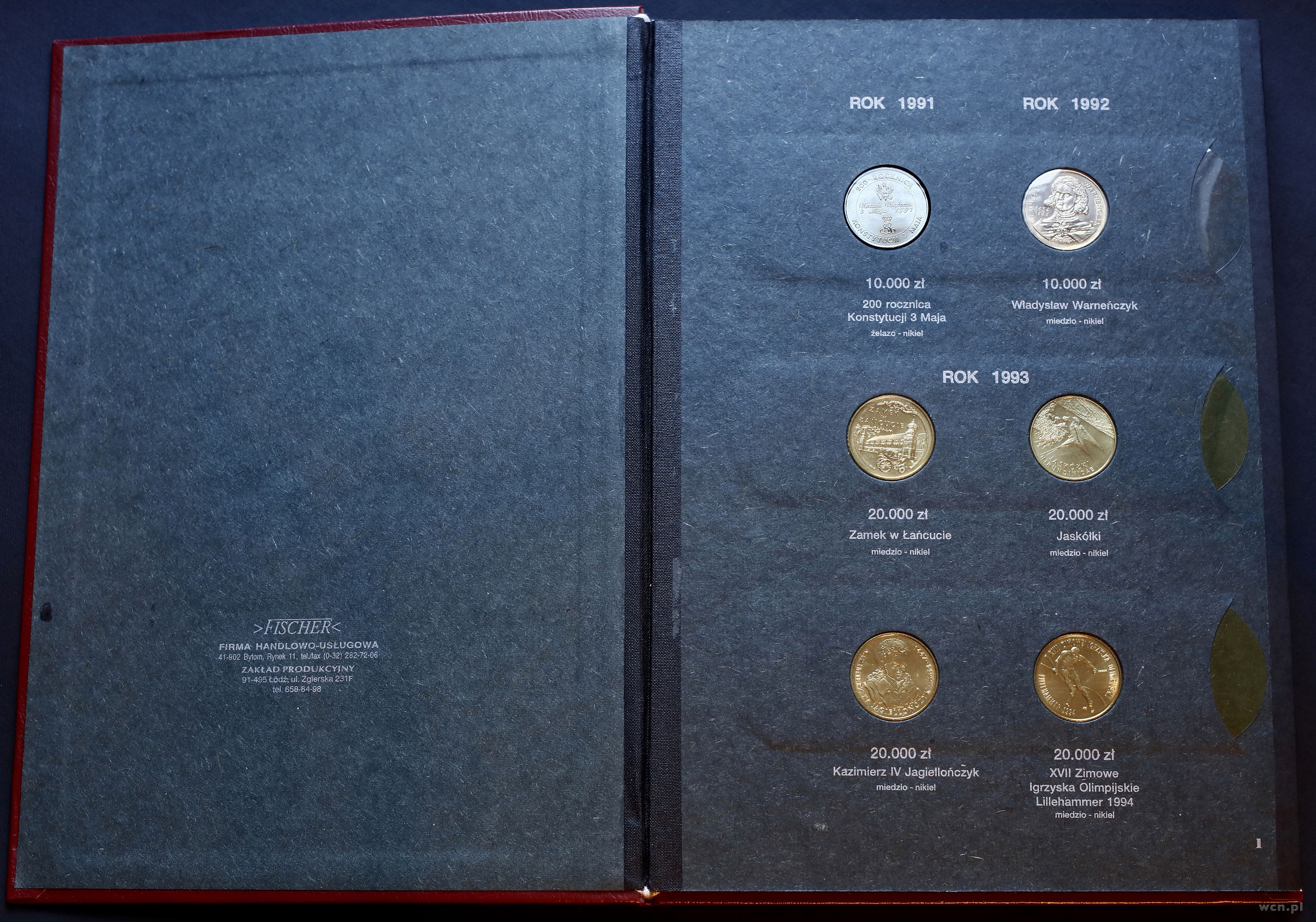 klaser z monetami polskimi z lat 1990–1995 Warszawa