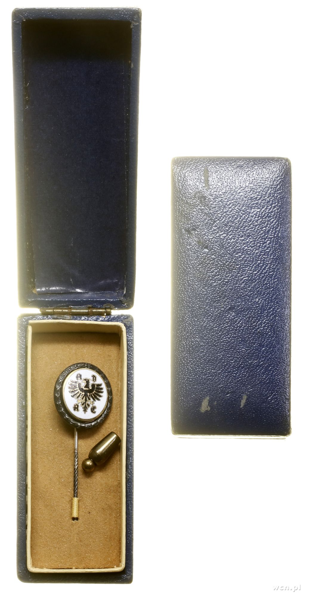 | Opis: | Niemcy, Repubika Weimarska (1918–1933), Allgemeine Deutsche Automobil-Club (ADAC) – wpinka członkowska, Medalion, w którym orzeł, po bokach A - D / A - C, na stronie odwrotnej sygnatura 925 / DESCHLER / MÜNCHEN,odznaka dwuczęściowa, mocowana na szpilkę, srebro, emalia, 18.5 mm, 5.25 g, dodatkowo oryginalne pudełko |