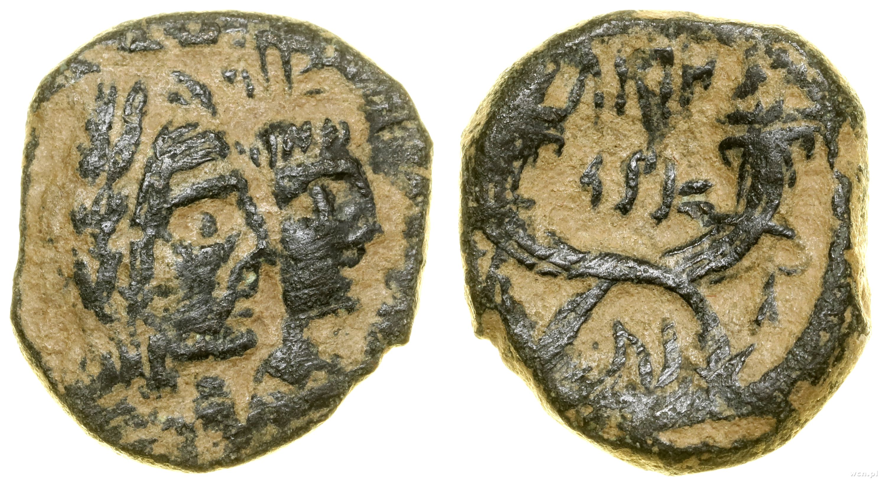 zestaw 3 monet prutah (kotwica) oraz lepton (orzeł) - Herod Wielki (40–4 pne) oraz brąz (prutah) - Królestwo Nabatejskie
