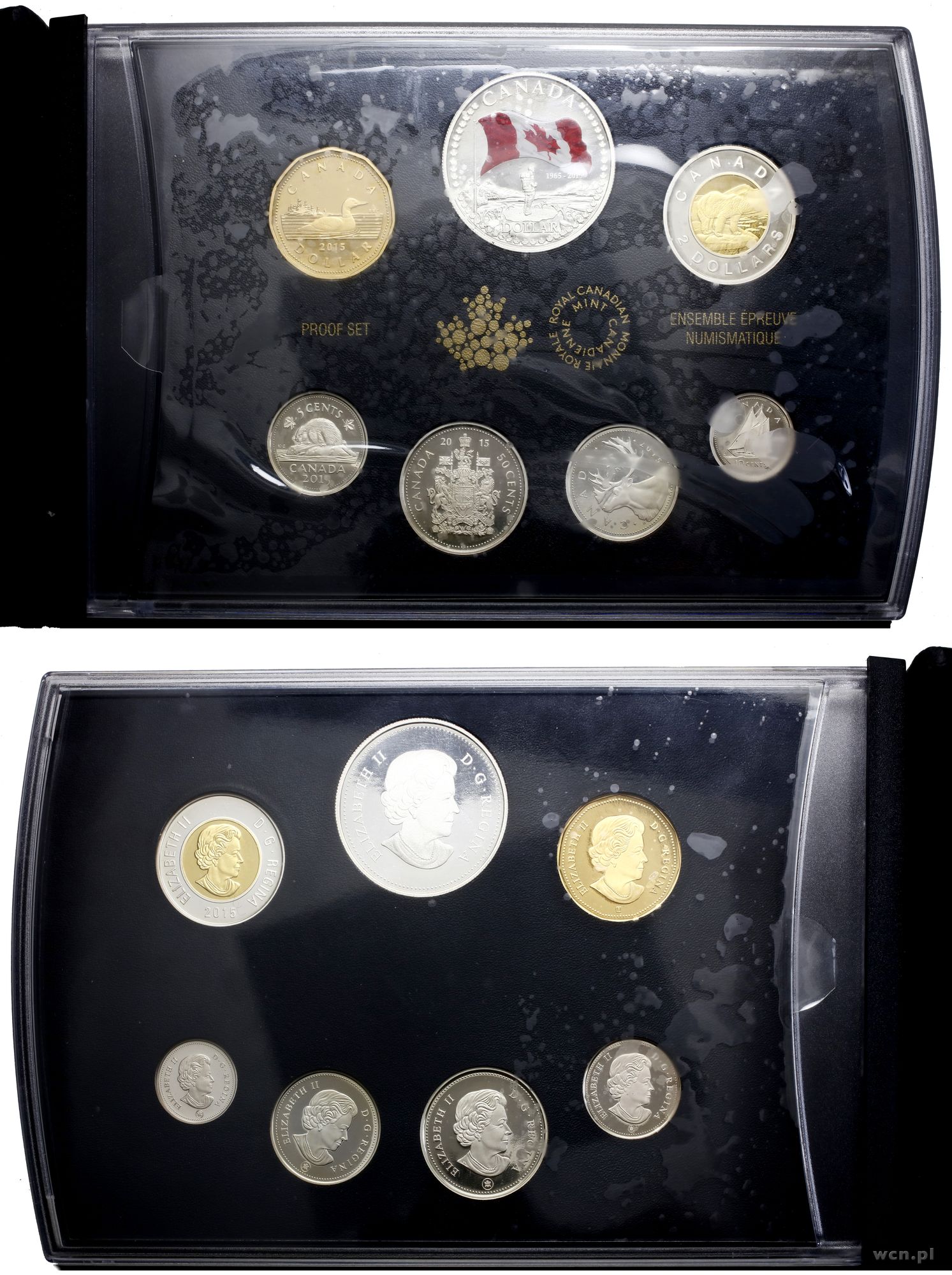 | Opis: | Kanada, Elżbieta II (1952–2022), zestaw rocznikowy 2015, Ottawa, 50. rocznica flagi Kanady, w skład zestawu wchodzi 5, 10, 25, 50 centów, 2 x 1 dolar oraz 2 dolary, srebro, srebro platerowane złotem, razem 7 sztuk, monety 1 dolar z ryskami, całość w eleganckim pudełku z certyfikatem nr 07449/20000, KM UC 396, 395, 219, 411, KM 786b, 1839.2, UC 312 |