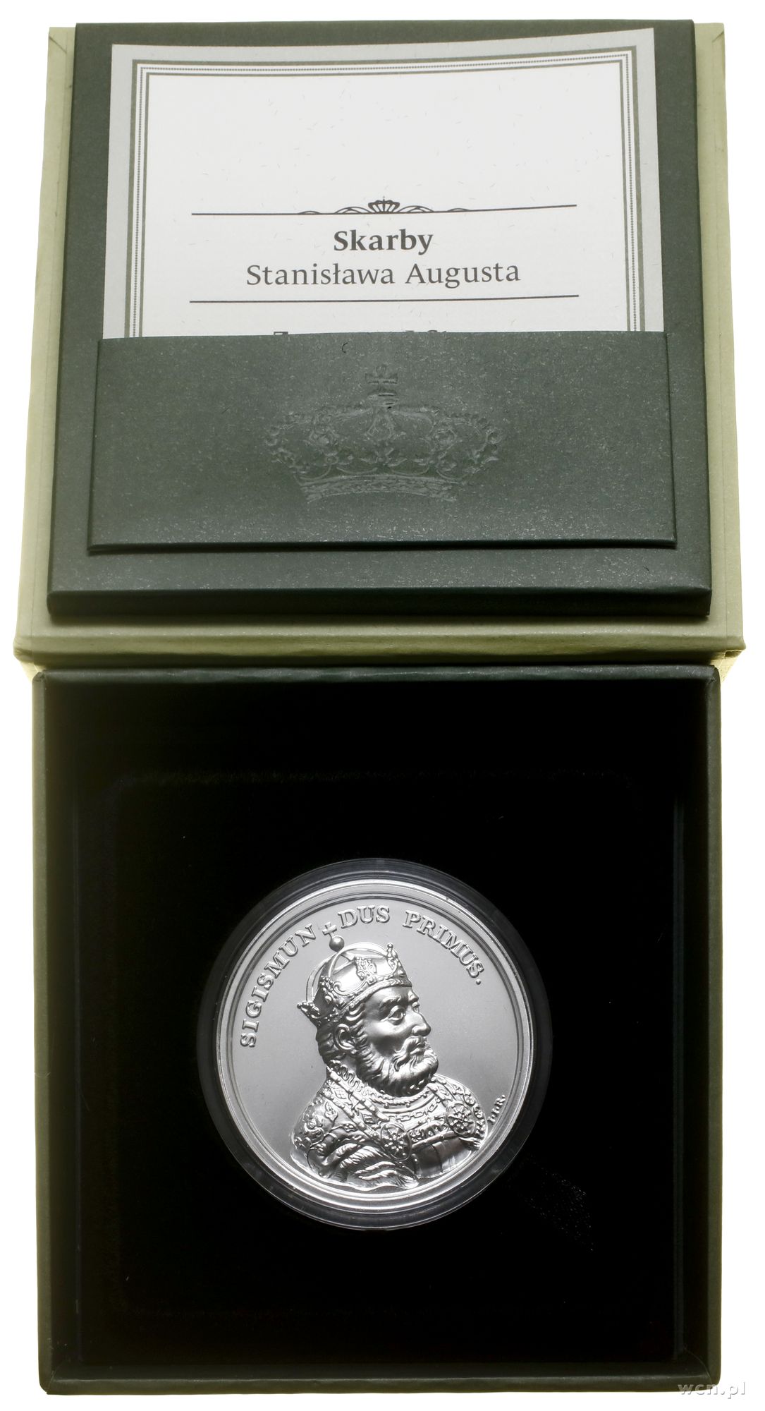 | Opis: | Polska, III Rzeczpospolita Polska (od 1989) - monety kolekcjonerskie, 50 złotych 2017, Warszawa, Skarby Stanisława Augusta – Zygmunt I Stary, srebro próby 999, 62.2 g, nakład do 6.000 sztuk, wyśmienicie zachowana moneta w plastikowym kapslu, ozdobnym pudełku z etui, z certyfikatem, Parchimowicz 1402 |