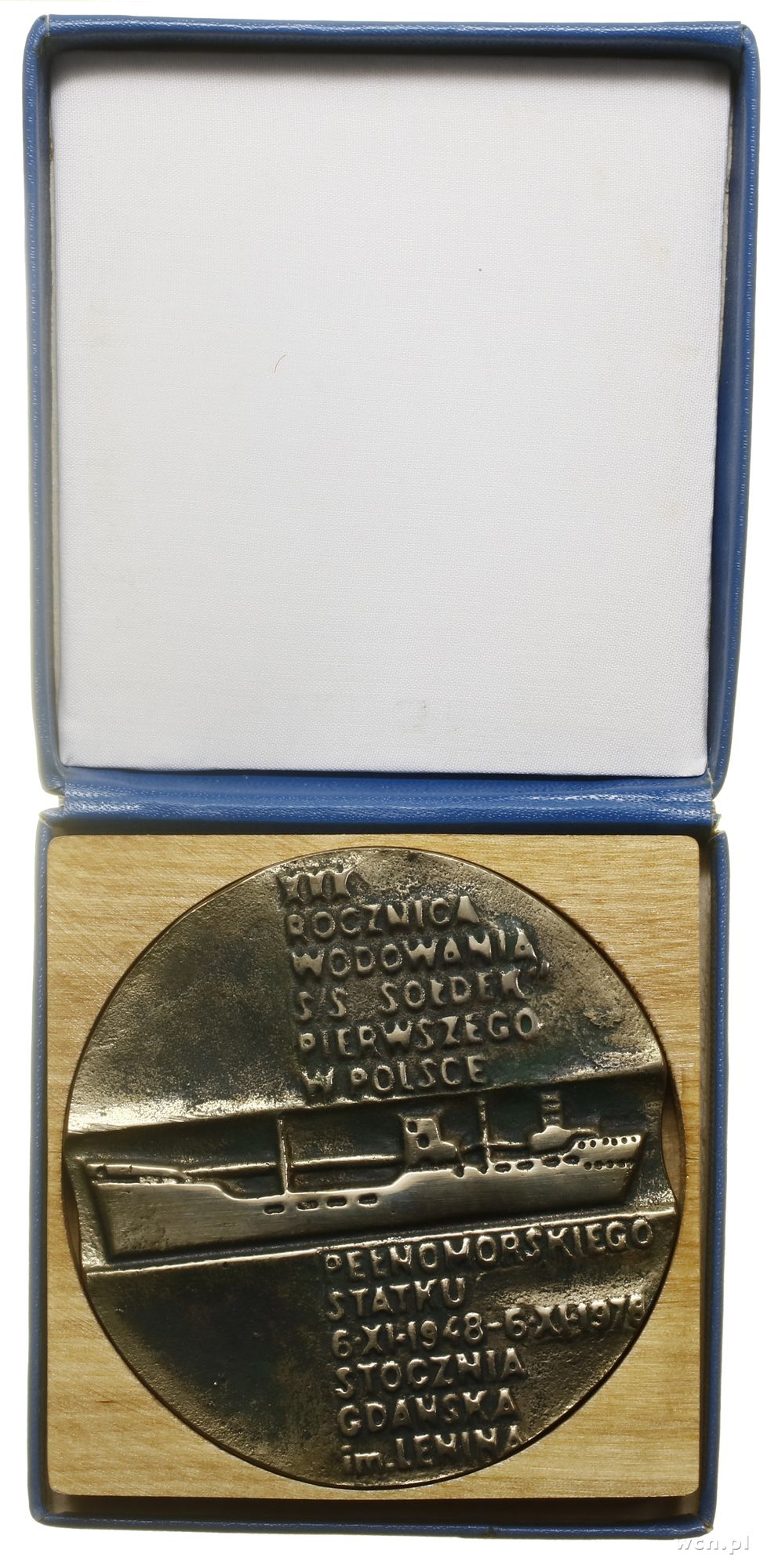 | Opis: | Polska, Polska Rzeczpospolita Ludowa (1952–1989), 30. rocznica wodowania S/S "Sołdek" 1978, Aw: S/S Sołdek w lewo, XXX / ROCZNICA / WODOWANIA / S/S "SOŁDEK" / PIERWSZEGO / W POLSCE / PEŁNOMORSKIEGO / STATKU / 6•XI•1948–6•XI•1978 / STOCZNIA / GDAŃSKA / im. LENINA, Rw: Kontenerowiec, niżej logo stoczni gdańskiej, brąz lany, 87.0 mm, 288.57 g, medal wzorowany na medalu Paszkowycz 120/78 |