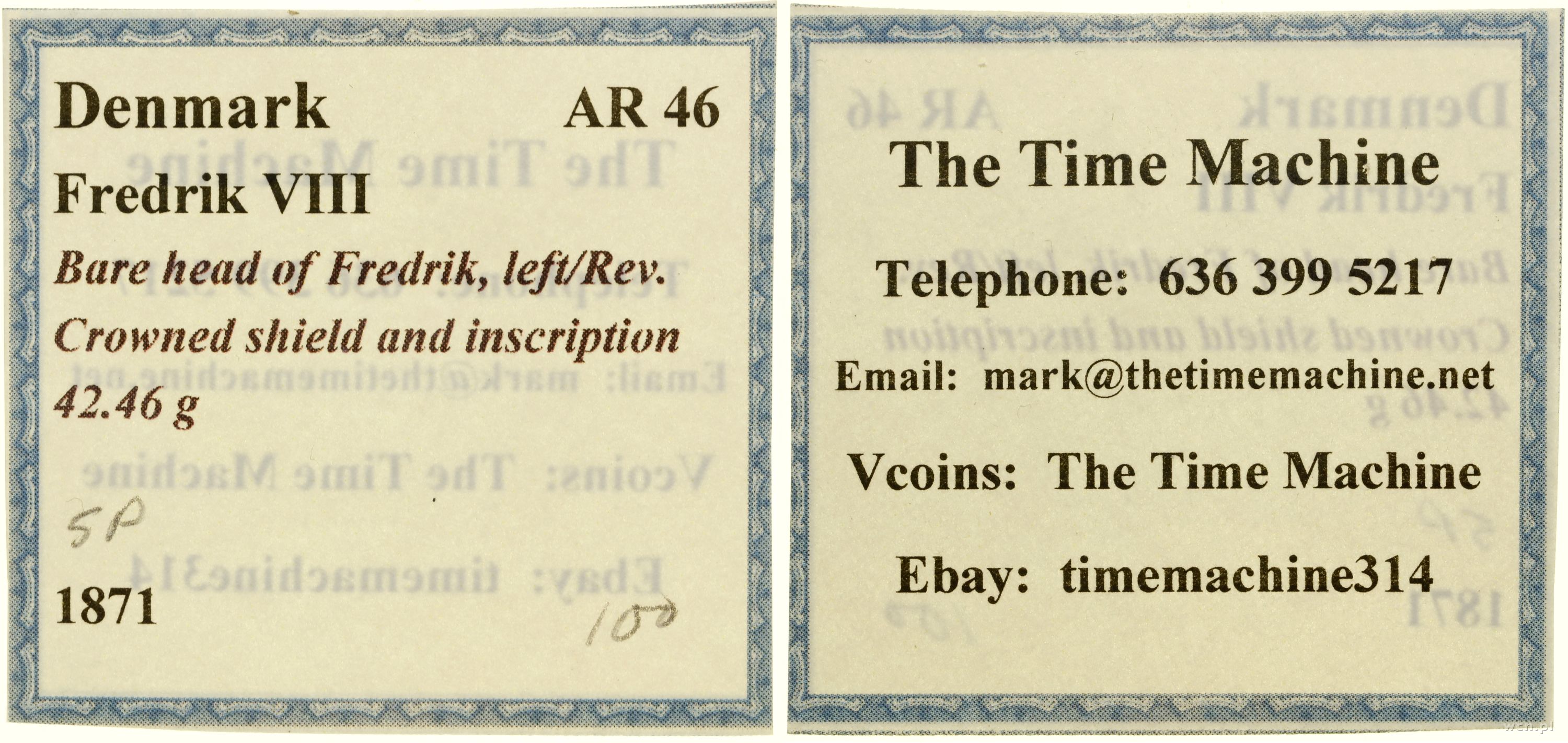 | Opis: | Dania, Fryderyk VIII (1906–1912), medal pamiątkowy 1911, Aw: Głowa w lewo, niżej DEUS MIHI ADJUTOR, FREDERIK VIII DANMARKS KONGE - • 1871 • VIII F ∴ P ∴ V ∴ S ∴ V ∴ 1911, Rw: Kartusz, wokół wstęga, na której DEN DANSKE STORE LANDSLOGE, srebro, 45.3 mm, 42.41 g, patyna |