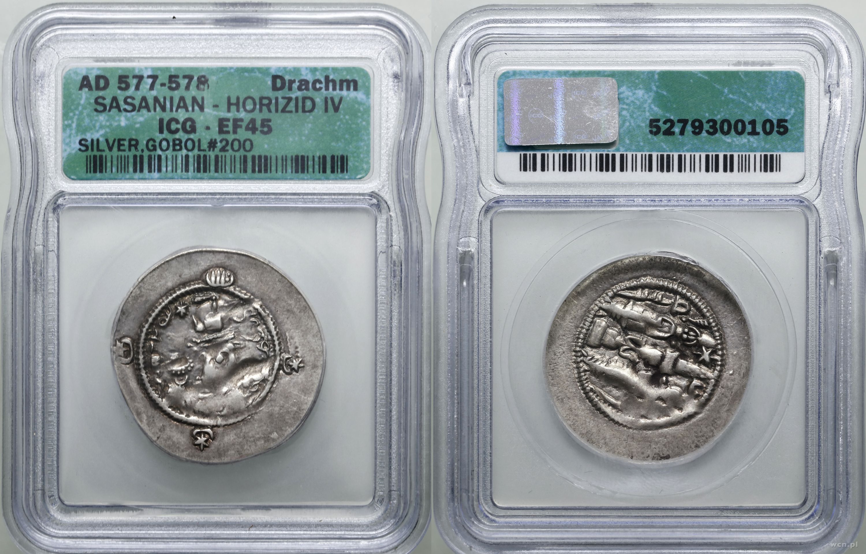 | Opis: | Persja, Sasanidzi - Hormizd IV (579–590), drachma (577–578), srebro, wada bicia , w opakowaniu firmy ICG nr 5279300105 z oceną EF45 |