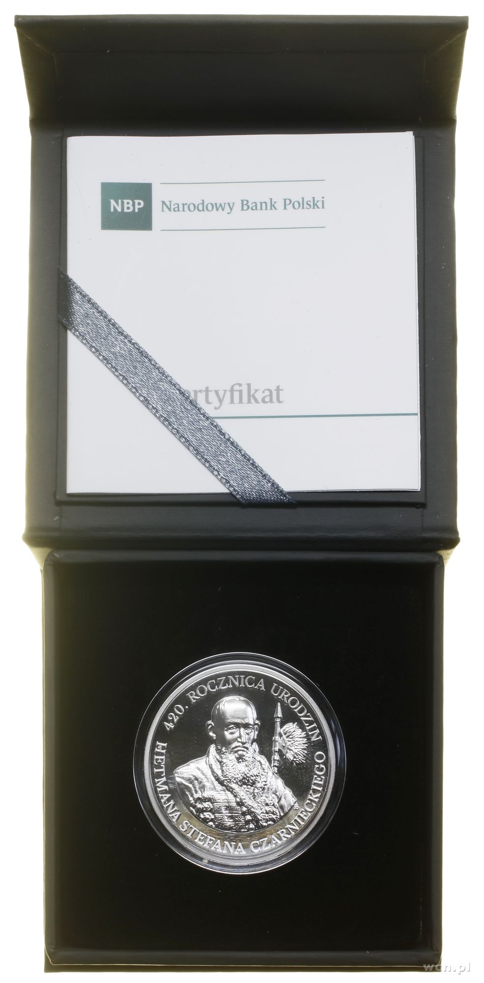 | Opis: | Polska, III Rzeczpospolita Polska (od 1989) - monety kolekcjonerskie, 10 złotych 2019, Warszawa, 420. rocznica urodzin hetmana Stefana Czarnieckiego, srebro próby 925, nakład do 15.000 sztuk, stemple lustrzane, w oryginalnym pudełku NBP, z certyfikatem, Parchimowicz 1447 |