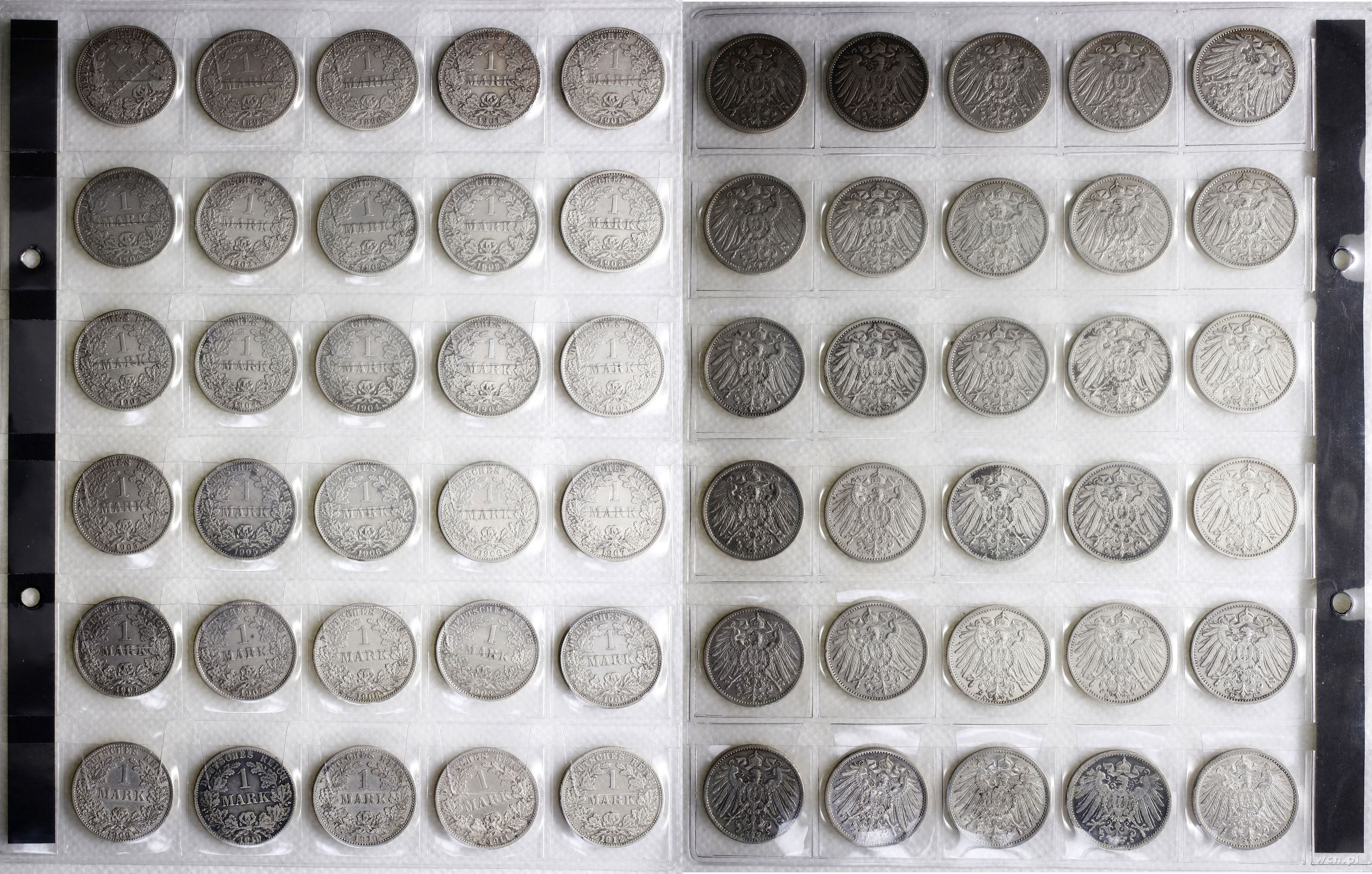 | Opis: | Cesarstwo Niemieckie, zestaw 58 x 1 karta, różne roczniki i mennice, srebro próby 900, 314.23 g, czystego srebra 282.81 g, monety w kartach z klasera |