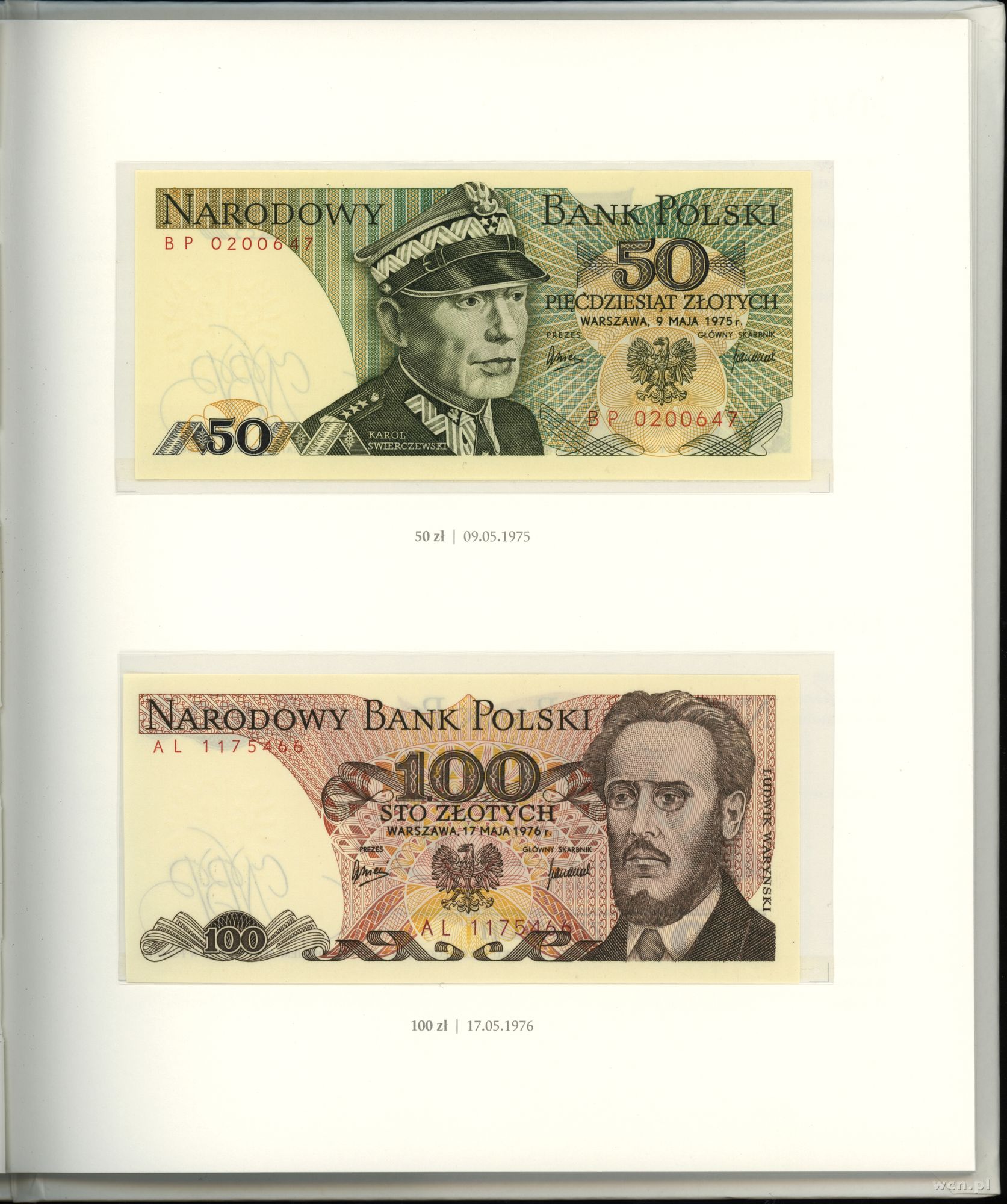 | Opis: | Polska, Polska Rzeczpospolita Ludowa (1952–1989), książeczka z banknotami "Polskie banknoty obiegowe z lat 1975 - 1996", zestaw banknotów obiegowych PRL - w zestawie kolekcja 23 nieużywanych banknotów o wartości od 10 do 2.000.000 złotych, serie kolejnych banknotów; R,T,BP,AL,GH,DN,AM,AB,CB,F,AM,AC,S,BA,AE,P,L,Z,E,M,A,B,B, banknoty pięknie zachowane, całość w kartonowej książce z opisami, oprawa twarda |