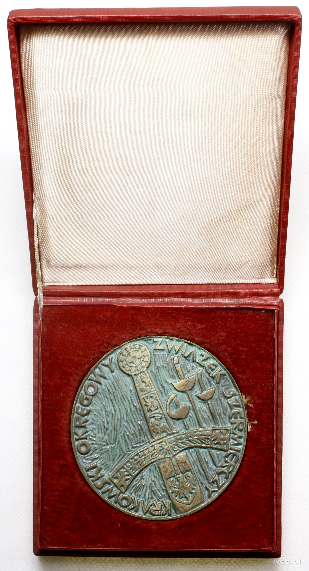 | Opis: | Polska, Polska Rzeczpospolita Ludowa (1952–1989), 50 lat Polskiego Związku Szermierczego 1972, Aw: 50 / LAT / liść / POLSKIEGO / ZWIĄZKU / SZERMIERCZEGO / 1922 * 1972, Rw: Szczerbiec, w tle trzy szpady, KRAKOWSKI OKRĘGOWY - ZWIĄZEK SZERMIERCZY, brąz lany i patynowany, 84.4 mm, 116.86 g, dodatkowo oryginalne pudełko |