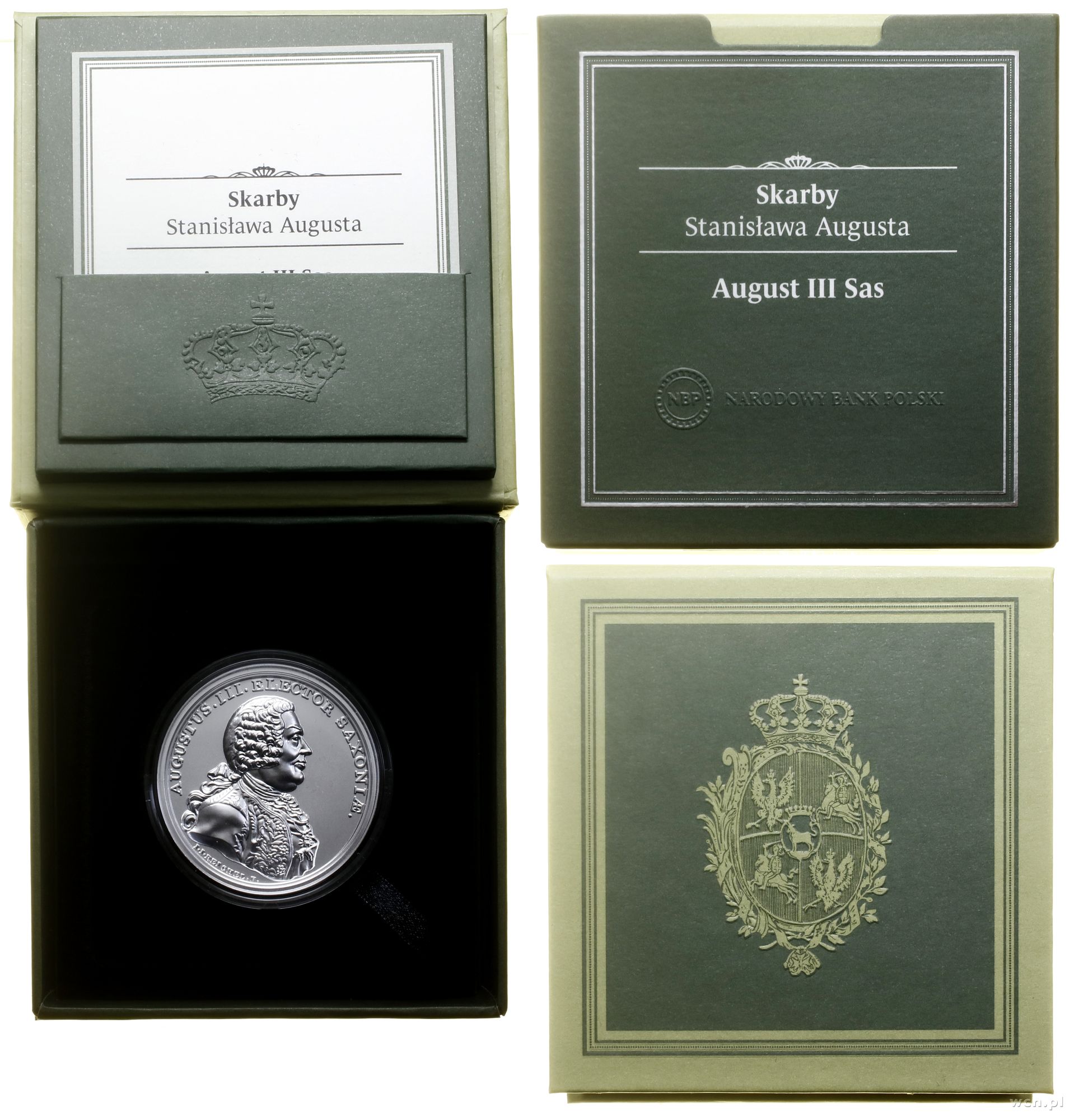 | Opis: | Polska, III Rzeczpospolita Polska (od 1989) - monety kolekcjonerskie, 50 złotych 2023, Warszawa, August III – medalowe z Serii Skarby Stanisława Augusta, srebro 45 mm, 62.2 g, próby 999, nakład: 6.000 szt., wyśmienicie zachowana moneta w plastikowym kapslu, ozdobnym pudełku z etui, z certyfikatem NBP, Parchimowicz 1584 |