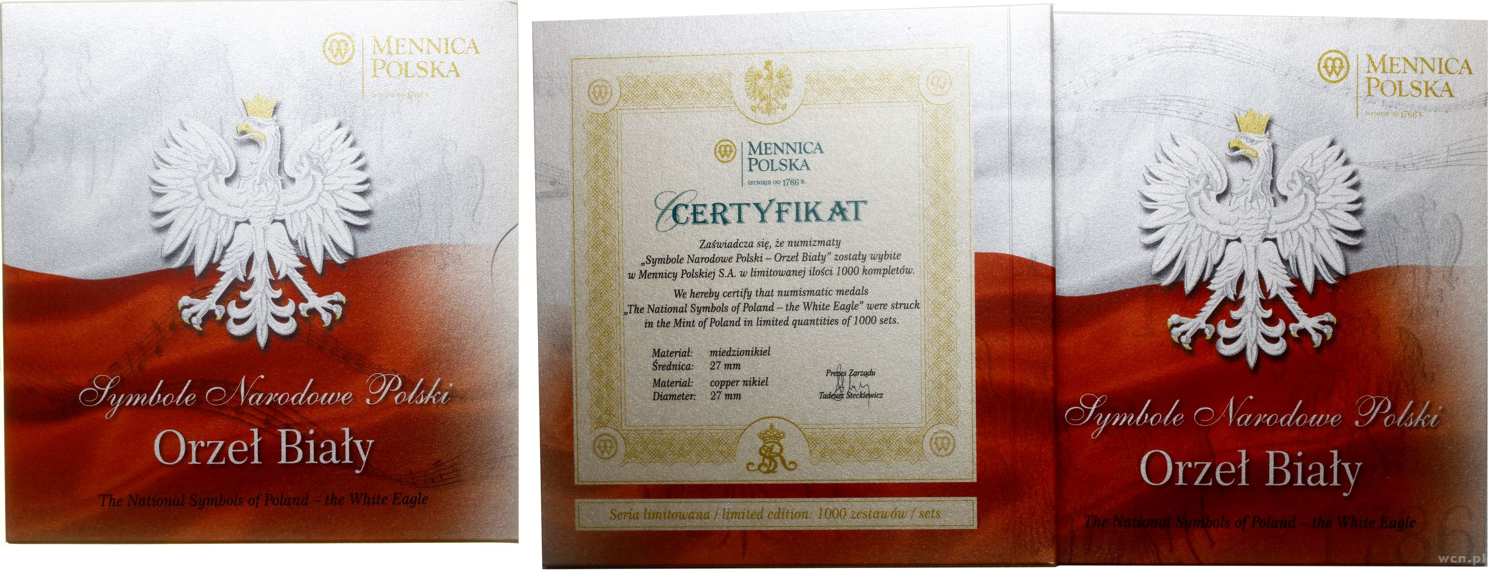 | Opis: | Polska, III Rzeczpospolita Polska (od 1989) - Mennica Warszawska, Symbole Narodowe Polski - Orzeł Biały, zestaw 7 żetonów z wizerunkiem Orła Polskiego w różnorakich formach, miedzionikiel, nakład 1.000 sztuk, całość w opakowaniu NBP z certyfikatem |