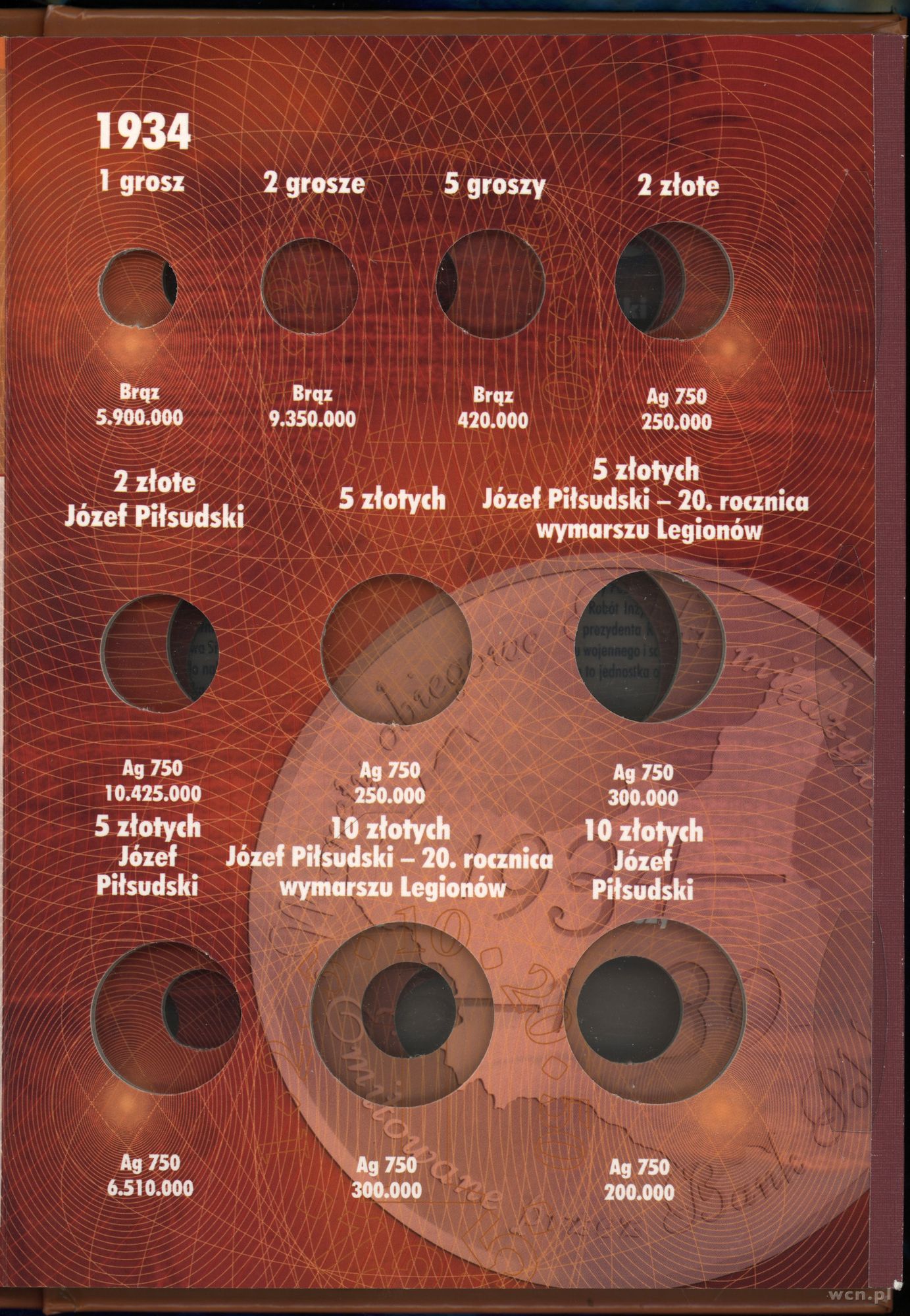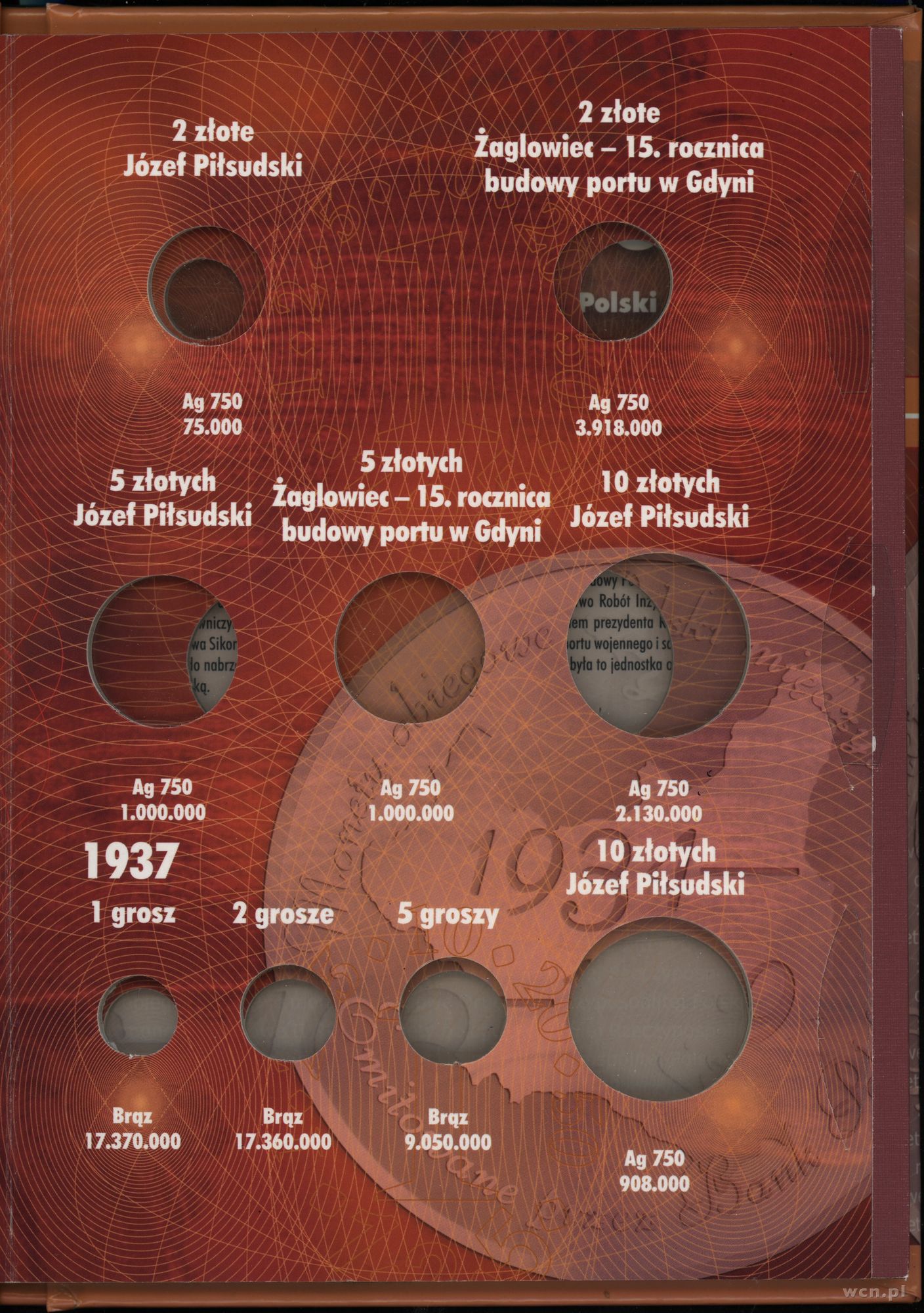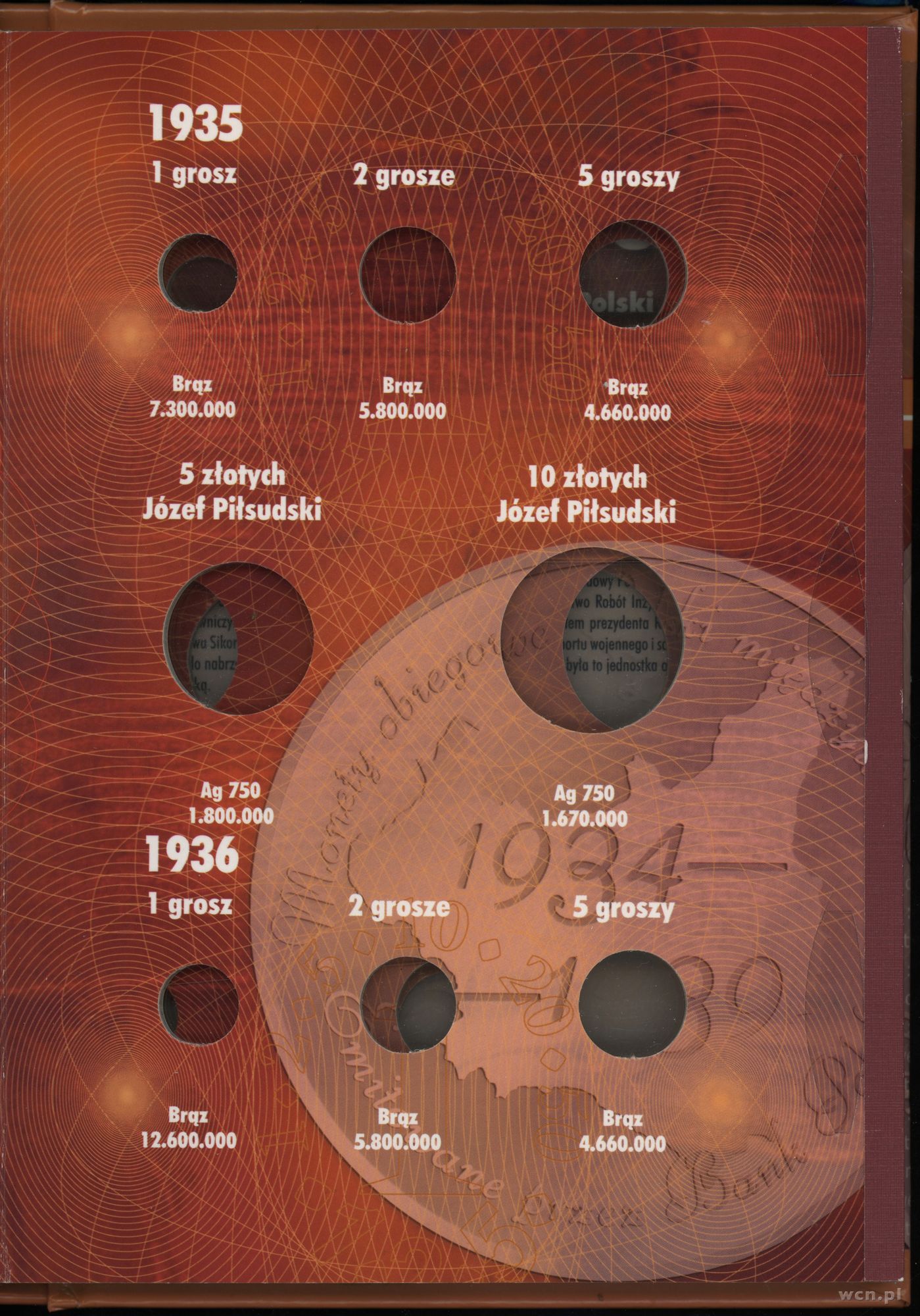 klaser na Polskie Monety Obiegowe II RP (bez monet) 1934–1939