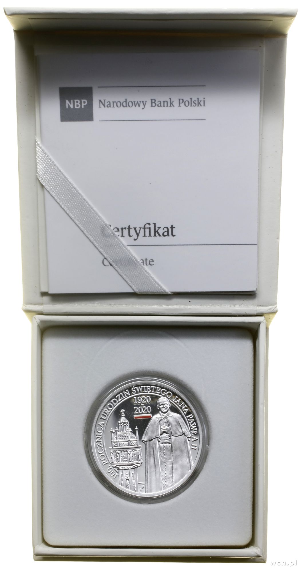 | Opis: | Polska, III Rzeczpospolita Polska (od 1989) - monety kolekcjonerskie, 10 złotych 2020, Warszawa, 100. rocznica urodzin św. Jana Pawła II, srebro próby 925, srebro 14.14 g, nakład do 16.000 sztuk, stemple lustrzane, druk UV, moneta w eleganckim pudełku NBP wraz z certyfikatem, Parchimowicz 1474 |