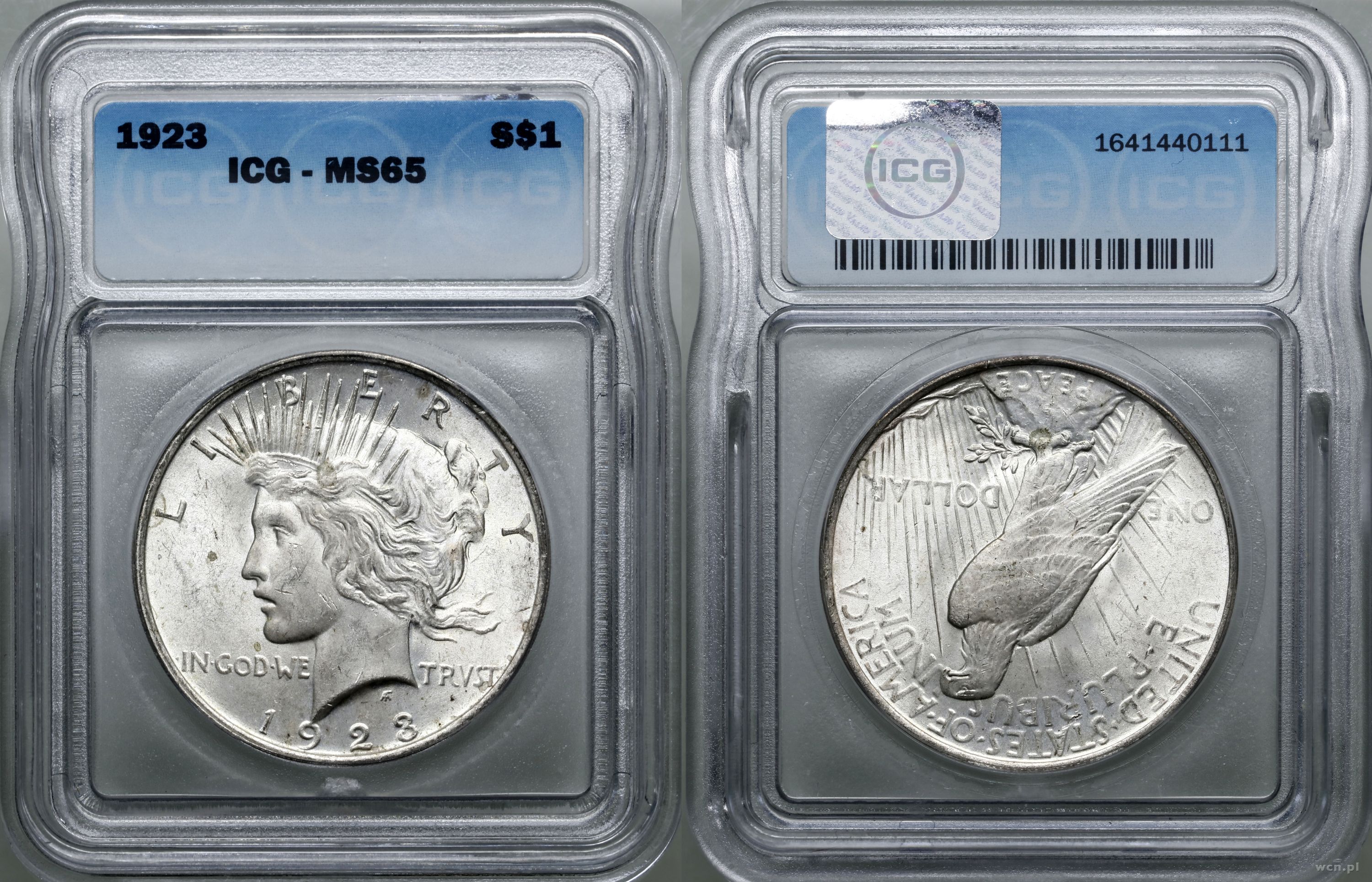 | Opis: | Stany Zjednoczone Ameryki (USA), 1 dolar 1923, Filadelfia, typ Peace, bardzo ładnie zachowana moneta , w opakowaniu firmy ICG nr 1641440111 z oceną MS65, KM 150 |