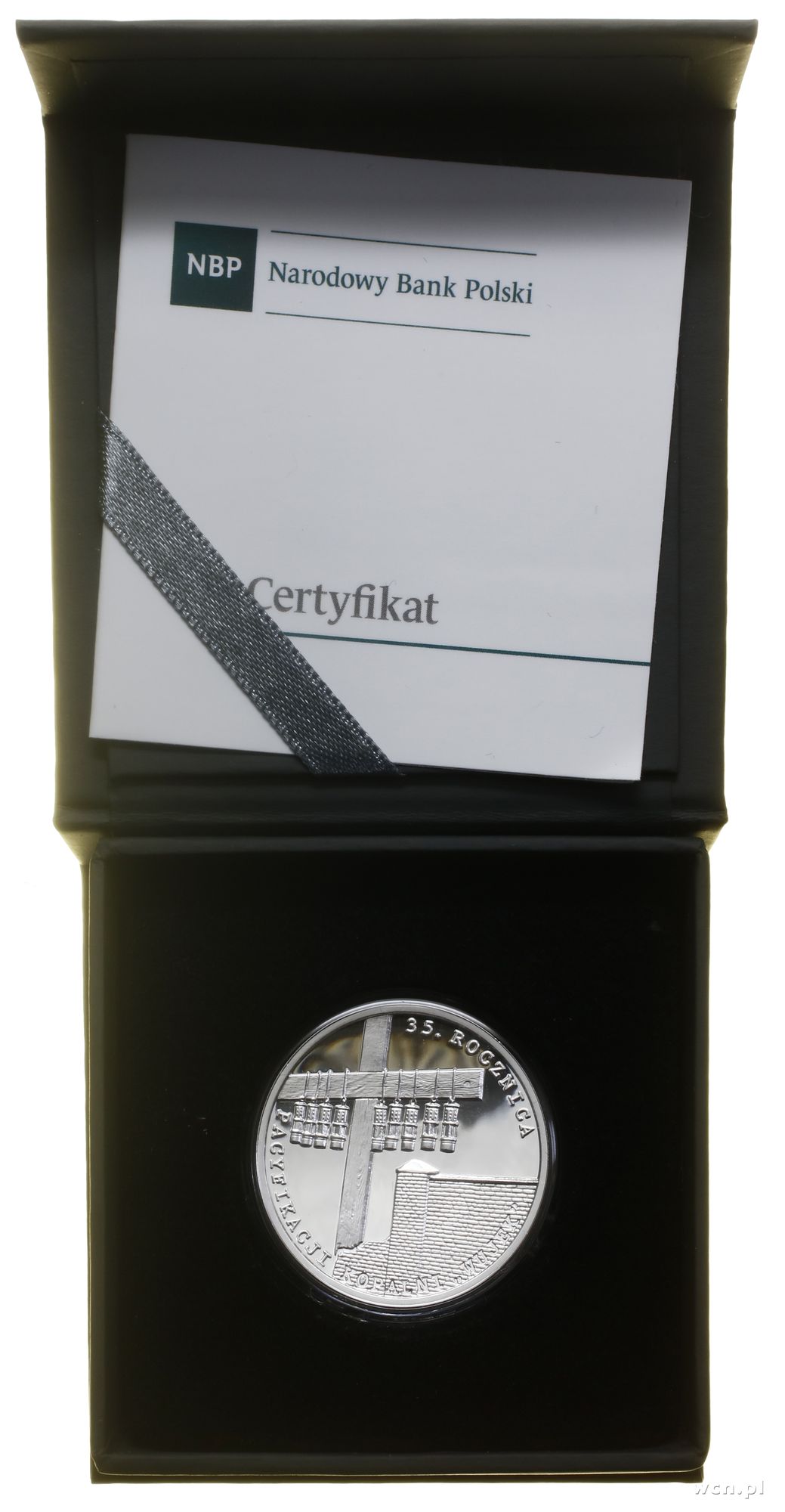 | Opis: | Polska, III Rzeczpospolita Polska (od 1989) - monety kolekcjonerskie, 10 złotych 2016, Warszawa, 35. rocznica pacyfikacji kopalni "Wujek", srebro próby 925, nakład do 20.000 sztuk, stemple lustrzane, moneta w plastikowym kapslu i pudełku NBP z certyfikatem, Parchimowicz 1367 |