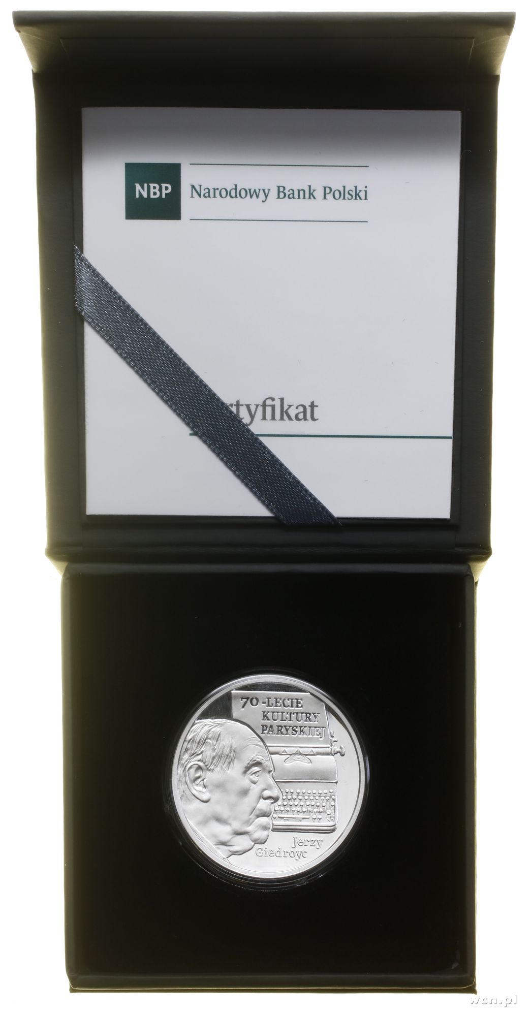 Opis: Polska, III Rzeczpospolita Polska (od 1989) - monety kolekcjonerskie, 10 złotych 2017, Warszawa, 70-lecie Kultury Paryskiej – Jerzy Giedroyć, srebro próby 925, nakład do 15.000 sztuk, stemple lustrzane, moneta w plastikowym kapslu i pudełku NBP z certyfikatem, Parchimowicz 1389