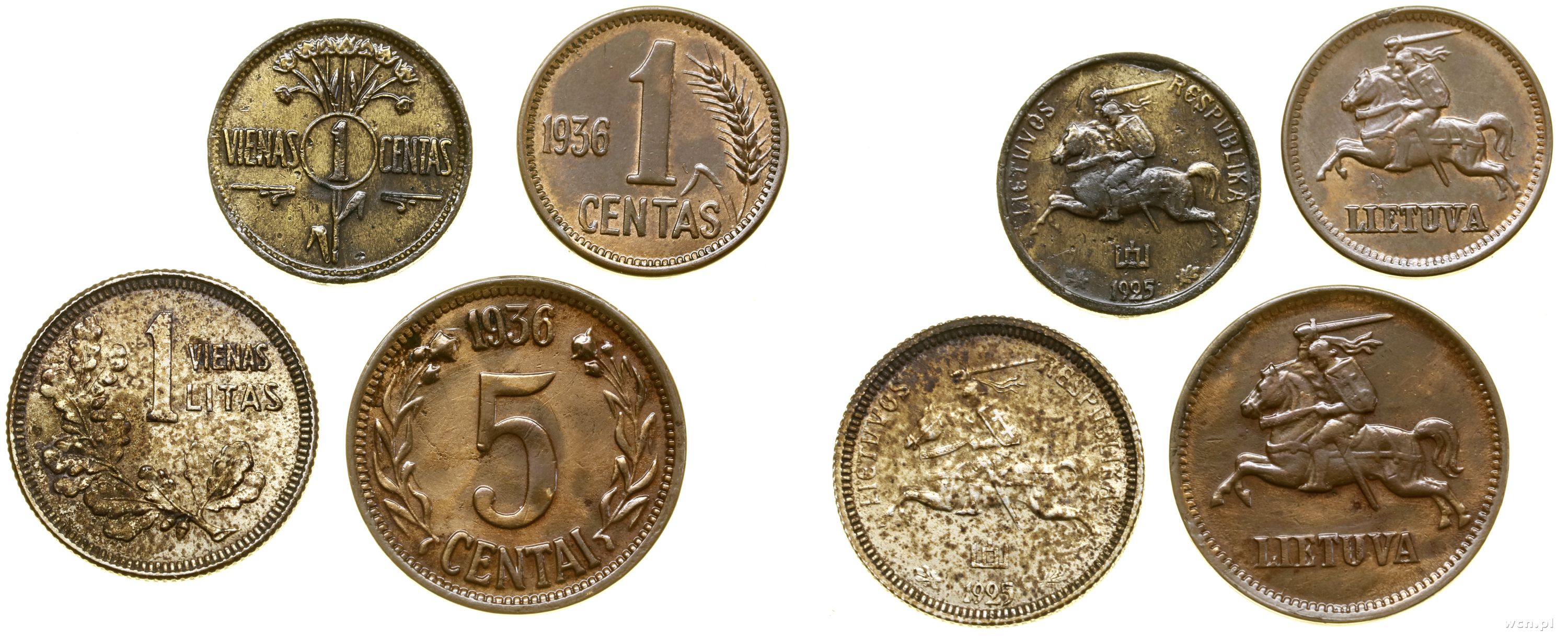 | Opis: | Litwa, Republika (1918–1940), zestaw 7 monet 1925–1936, Birmingham i Kowno, w zestawie: 1 cent 1925, 1 cent 1936, 5 centów 1925, 5 centów 1936, 10 centów 1925, 20 centów 1925, 1 lit 1925, razem 7 sztuk, patyna, większość monet lakierowana, Parchimowicz 1–8 |