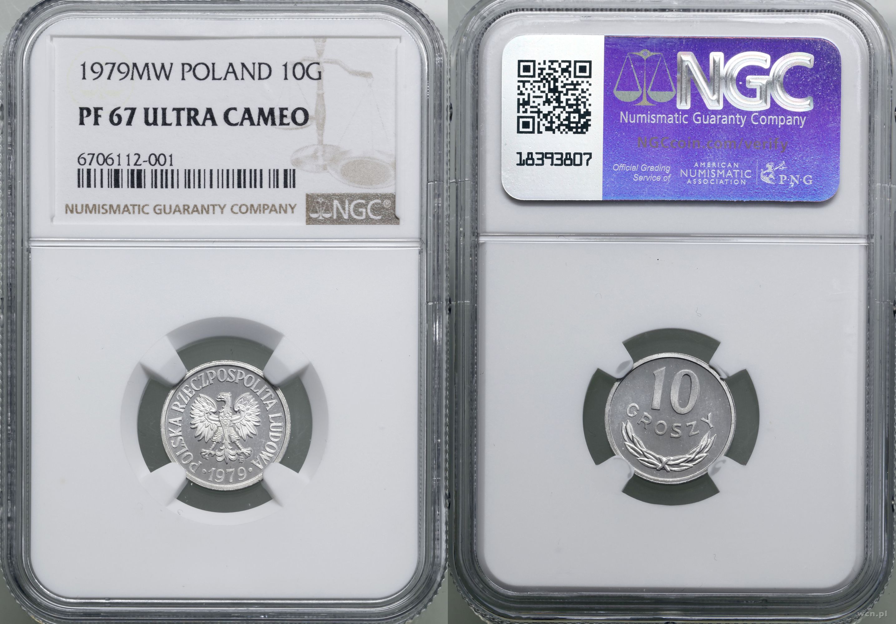 | Opis: | Polska, Polska Rzeczpospolita Ludowa (1952–1989) - monety obiegowe i kolekcjonerskie, 10 groszy 1979, Warszawa, wyśmienite, stemple lustrzane , w opakowaniu firmy NGC nr 6706112-001 z oceną PF67 ULTRACAMEO, Parchimowicz 206s |