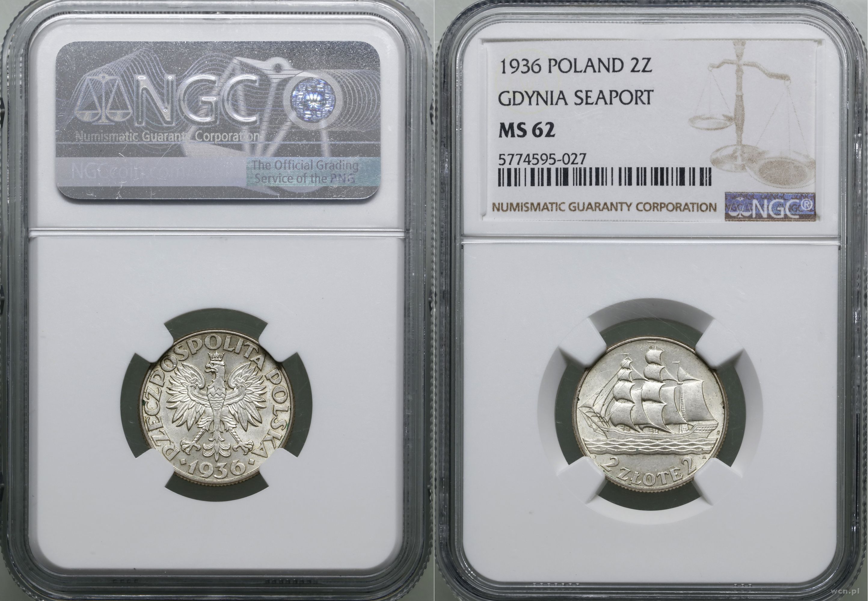 | Opis: | Polska, II Rzeczpospolita Polska (1918–1939) - monety obiegowe, 2 złote 1936, Warszawa, Żaglowiec, bardzo ładnie zachwana moneta , w opakowaniu firmy NGC nr 5774595-027 z oceną MS62, Parchimowicz 112 |