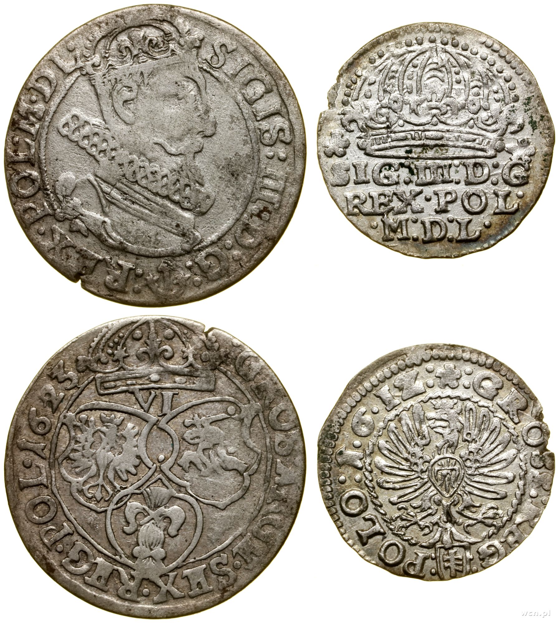 zestaw 2 monet, 1612–1623, Kraków, 1) grosz 1612 (II-/III+) 2) szóstak 1623 (III)