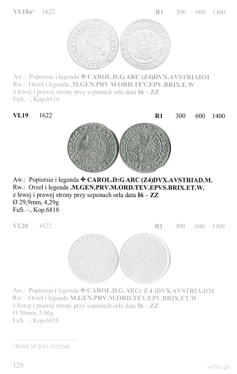 | Opis: | Księstwo nyskie biskupów wrocławskich / Karol Austriacki (1608–1624). 24 krajcary, 1622, Nysa; odmiana z Orłem na rewersie; E.-M. VI.19 (R1), F.u.S. 2633, Kop. 6818 (R1); bardzo ładne, piękny blask menniczy, egzemplarz ilustrowany w katalogu monet 24-krajcarowych autorstwa Ejzenharta i Millera. |