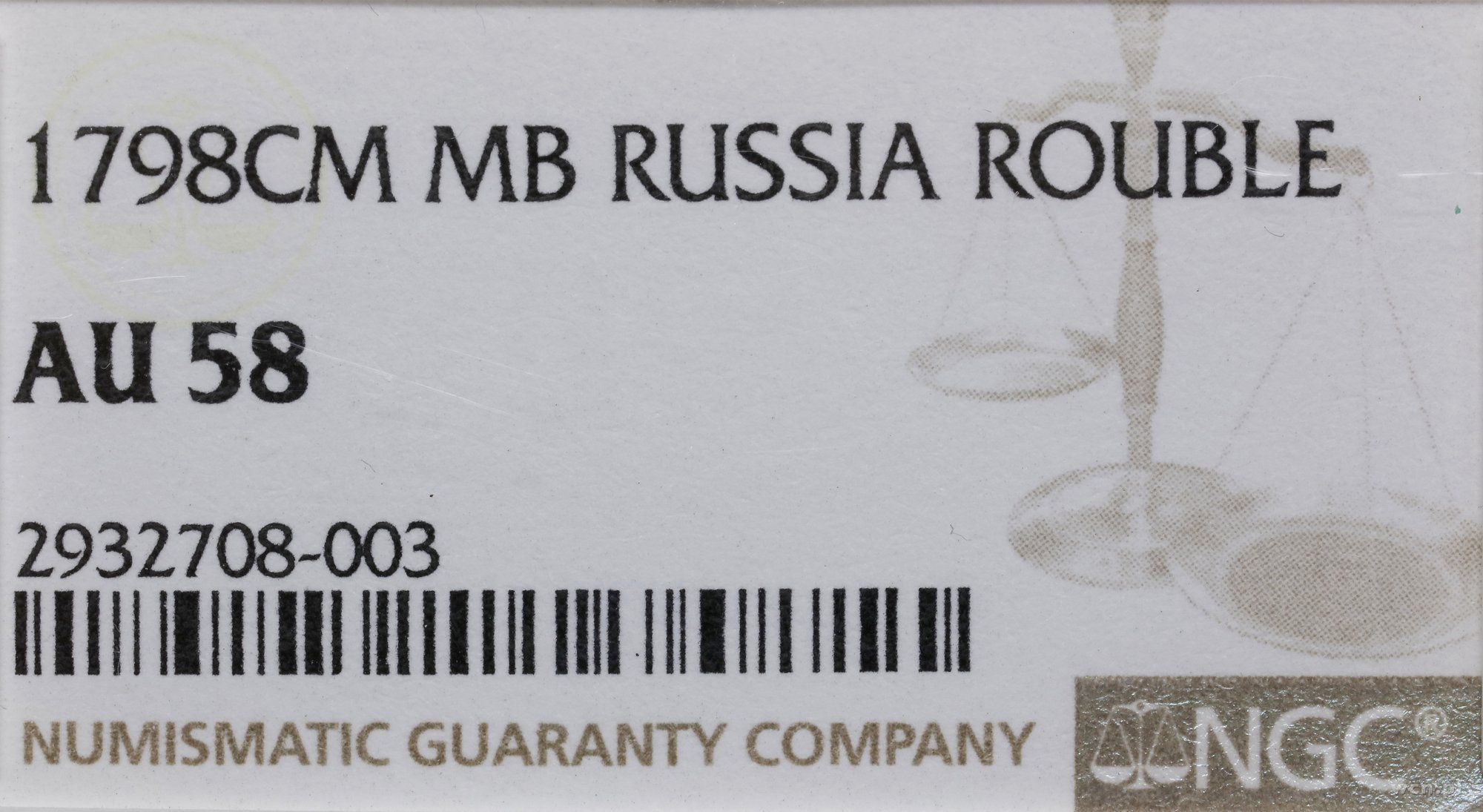| Opis: | ROSJA / Paweł I (1796–1801). Rubel, 1798 СМ-МБ, Petersburg; Adrianov 1798a, Bitkin 32, Uzdenikow 1280; rzadki typ monety, subtelna patyna, piękny egzemplarz z dużym połyskiem menniczym, moneta w pudełku NGC 2932708-003 z oceną AU58. |