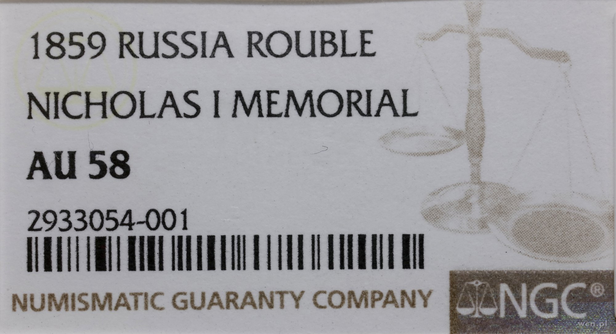 | Opis: | ROSJA / Aleksander II (1855–1881). Rubel pomnikowy, 1859, Petersburg; wybity z okazji odsłonięcia pomnika Mikołaja I w Petersburgu 25 czerwca 1859 roku, w rocznicę urodzin zmarłego cara Mikołaja I; Bitkin 567, GM 79, Uzdenikow 4187; drobne ryski, ale moneta w bardzo ładnym stanie zachowania, egzemplarz w pudełku NGC 2933054-001 z oceną AU58. |