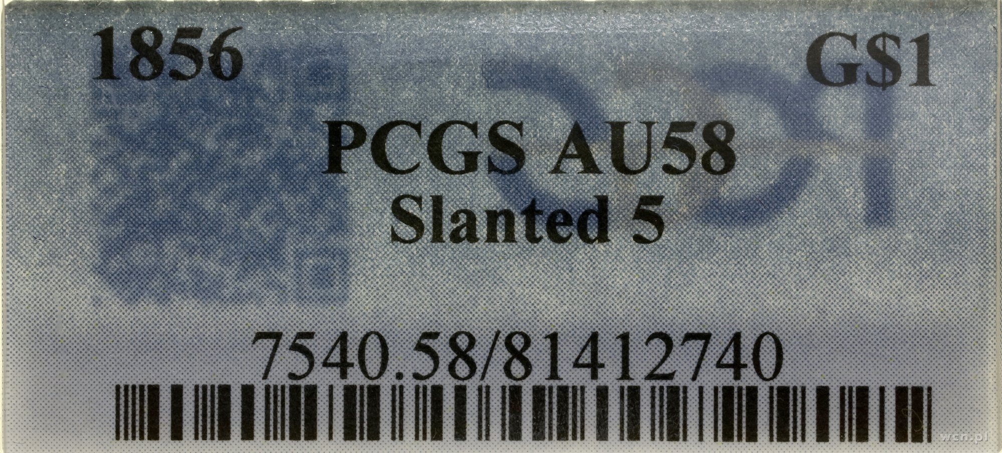 | Opis: | STANY ZJEDNOCZONE AMERYKI (USA). 1 dolar, 1856, Filadelfia; typ Liberty Head; Fr. 94, KM 86; złoto; nakład 1.762.936 sztuk, bardzo ładna moneta w pudełku PCGS 7540.58/81412740 z oceną AU58. |