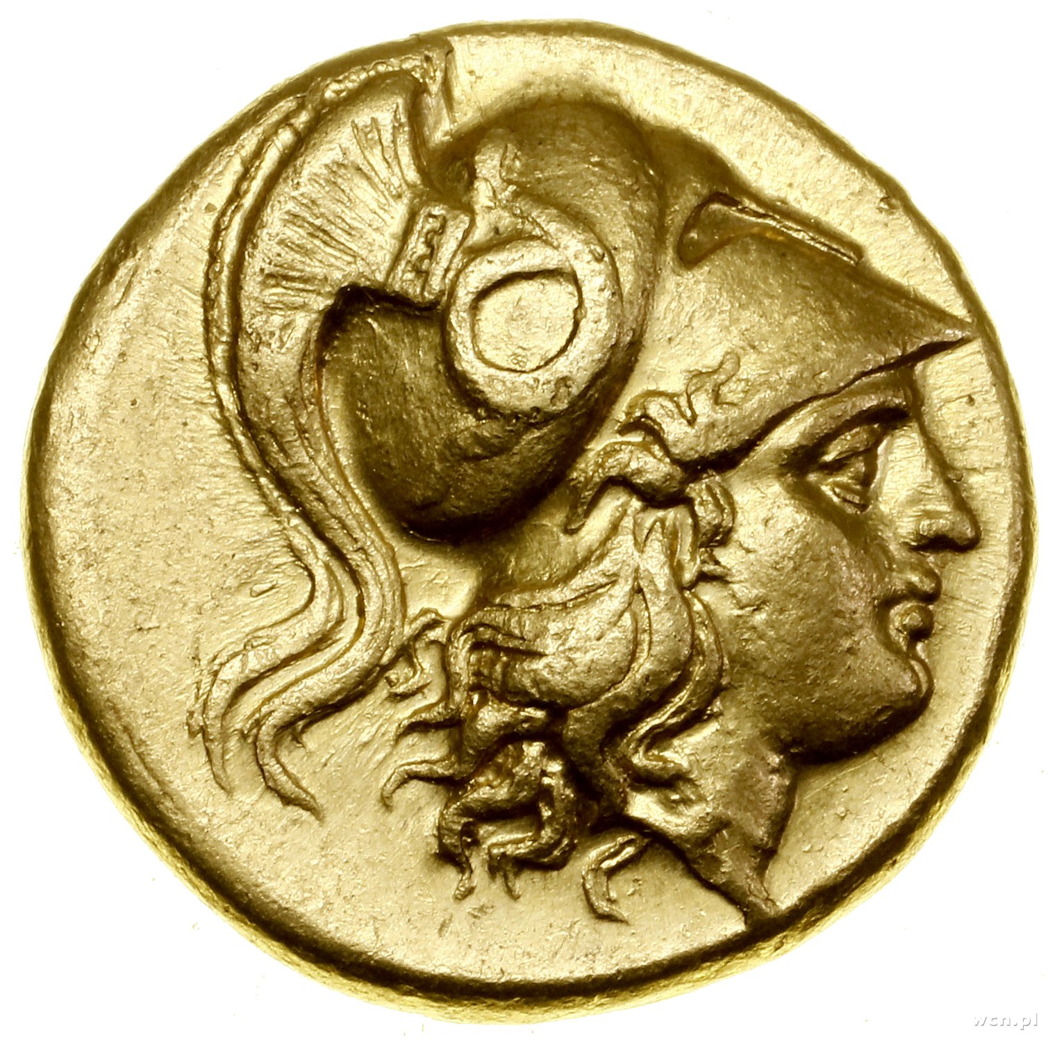 | 2 | Macedonia / Filip III Arrhidaios (323–317 pne) Stater, (ok. 323–317 pne), Abydos; Aw: Głowa Ateny w hełmie, w prawo; Rw: Stojąca w lewo Nike, trzymająca wieniec, pod wieńcem monogram, wąż i pentagram, z prawej str.. |