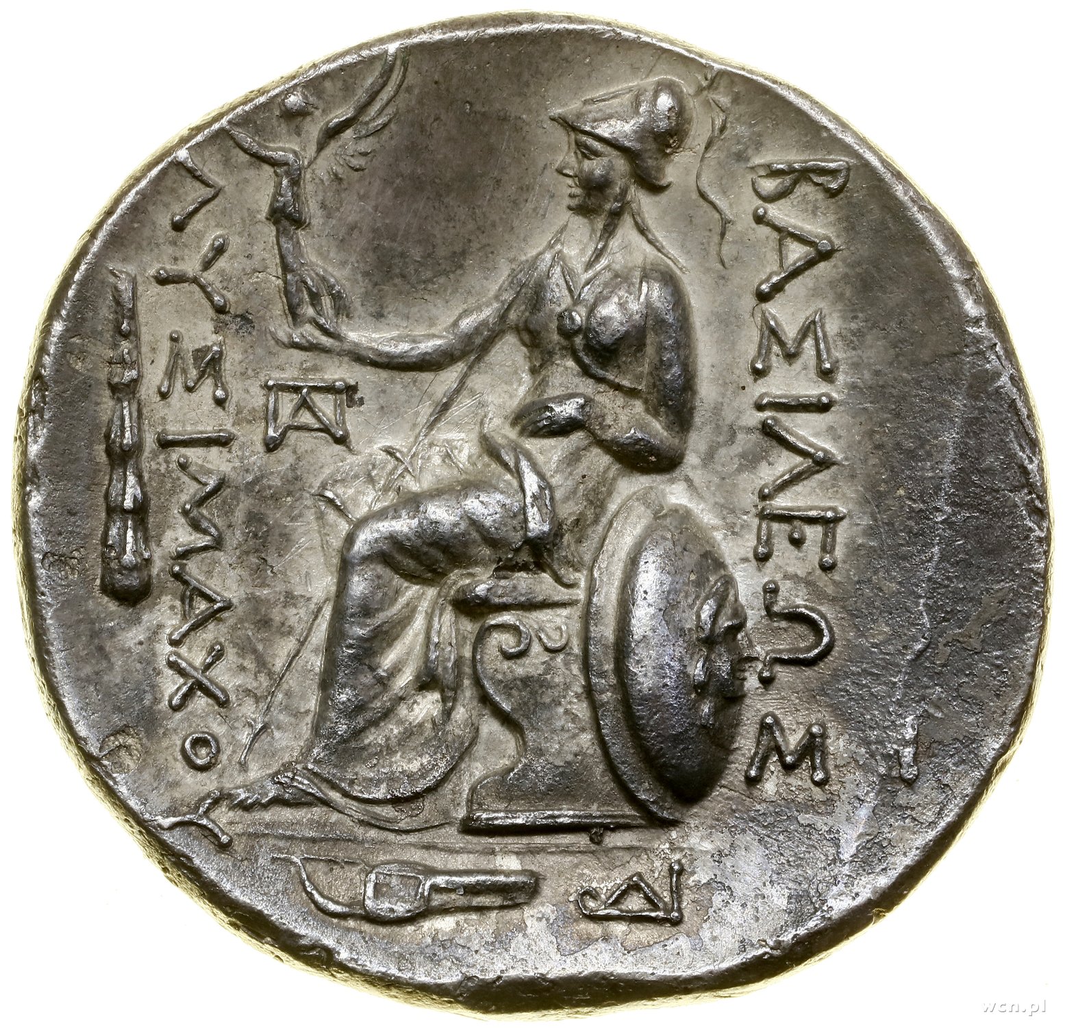 | 5 | Tracja / Lizymach (323–281 pne) Tetradrachma - emisja pośmiertna, (po 281 pne), Kios (w Bitynii); Aw: Głowa Aleksandra w diademie i z rogami Amona w prawo; Rw: Atena siedząca w lewo, w prawej, wycią.. |