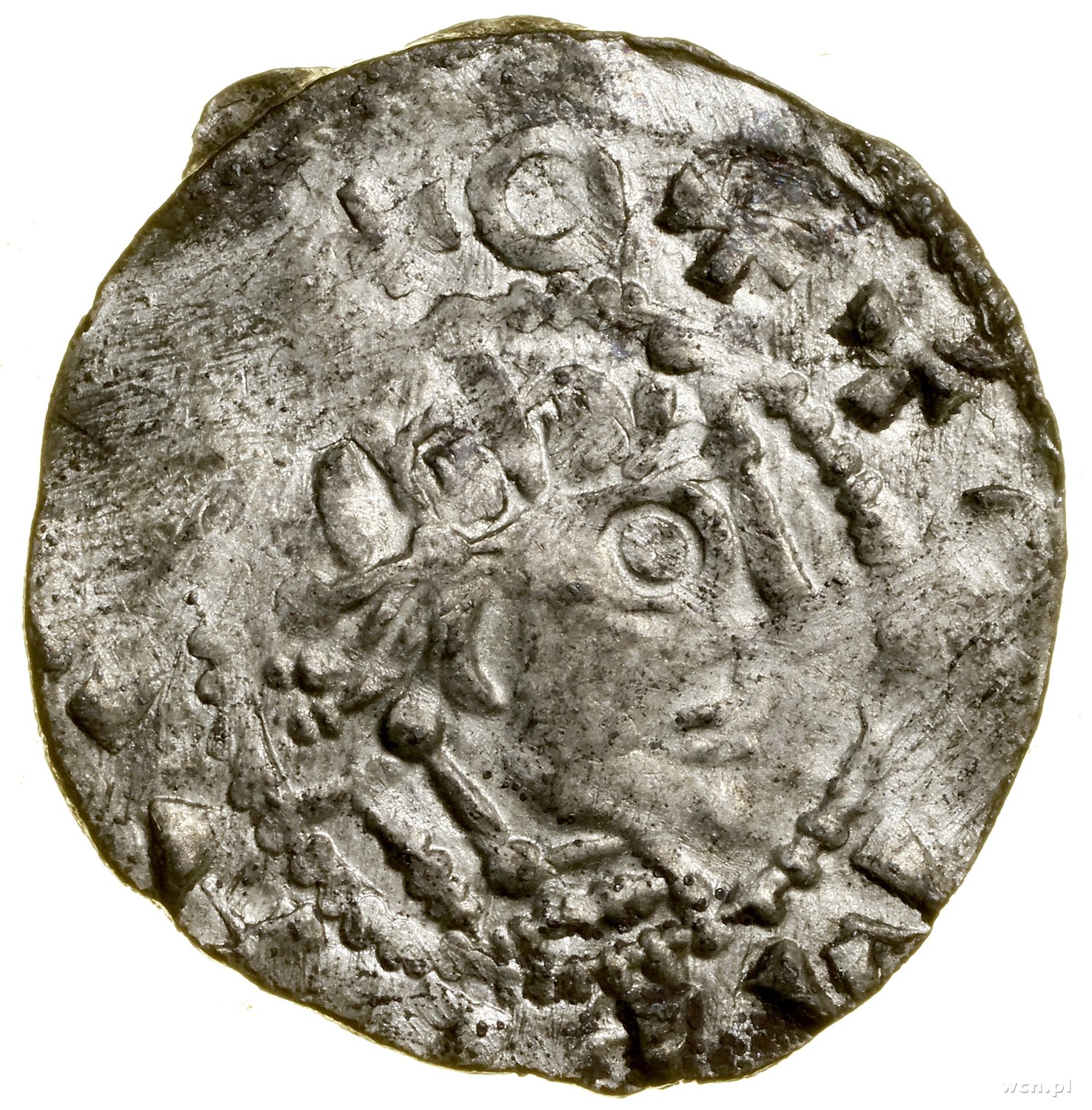 | 63 | POLSKA / Bolesław Chrobry (992–1025) Denar czeski (naśladownictwo denara bawarskiego), (po 1002); Aw: Krzyż grecki z rozszerzonymi końcami ramion, w kątach klin, trzy kulki, klin i pierścień z kulką, leg.. |