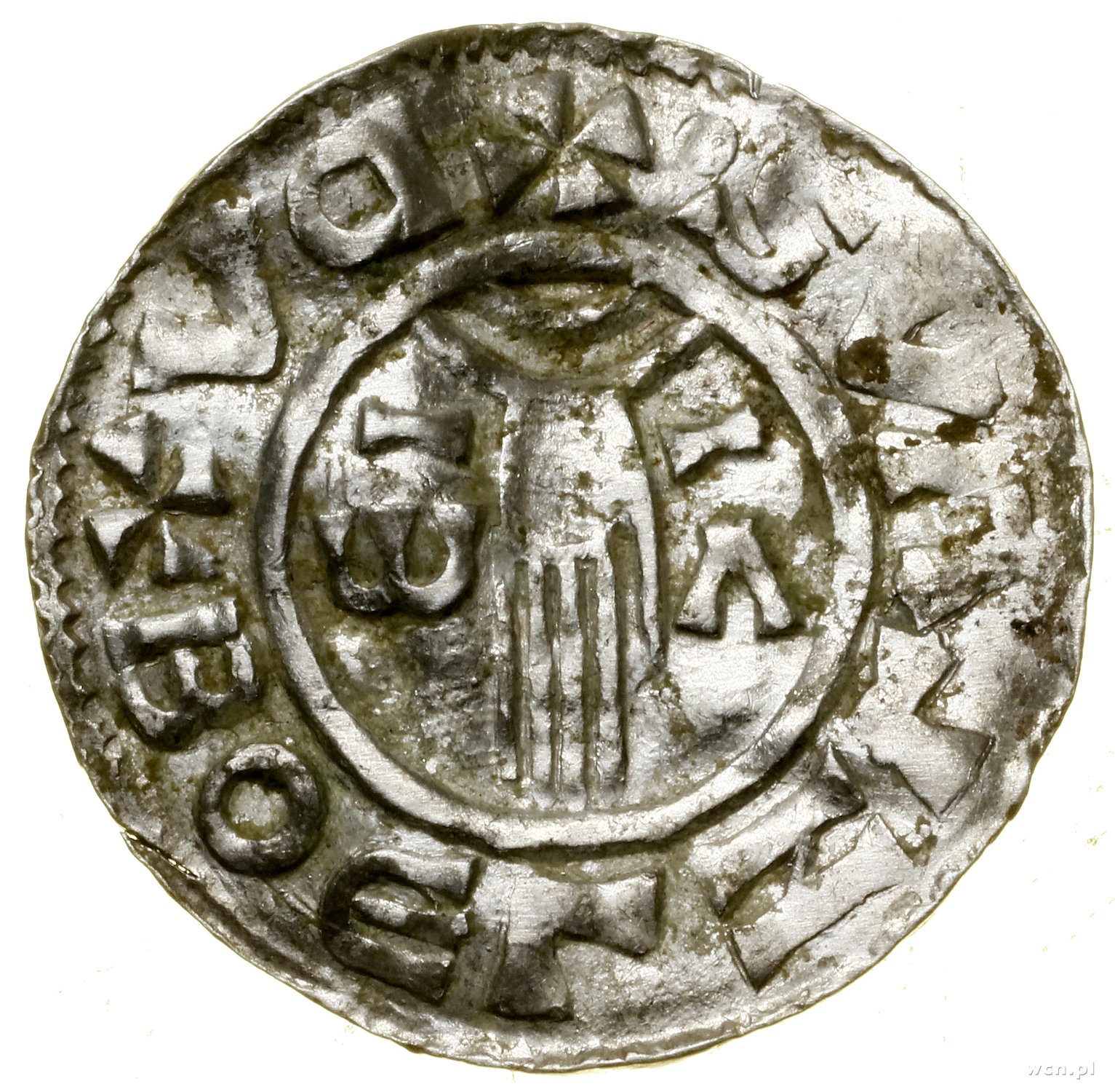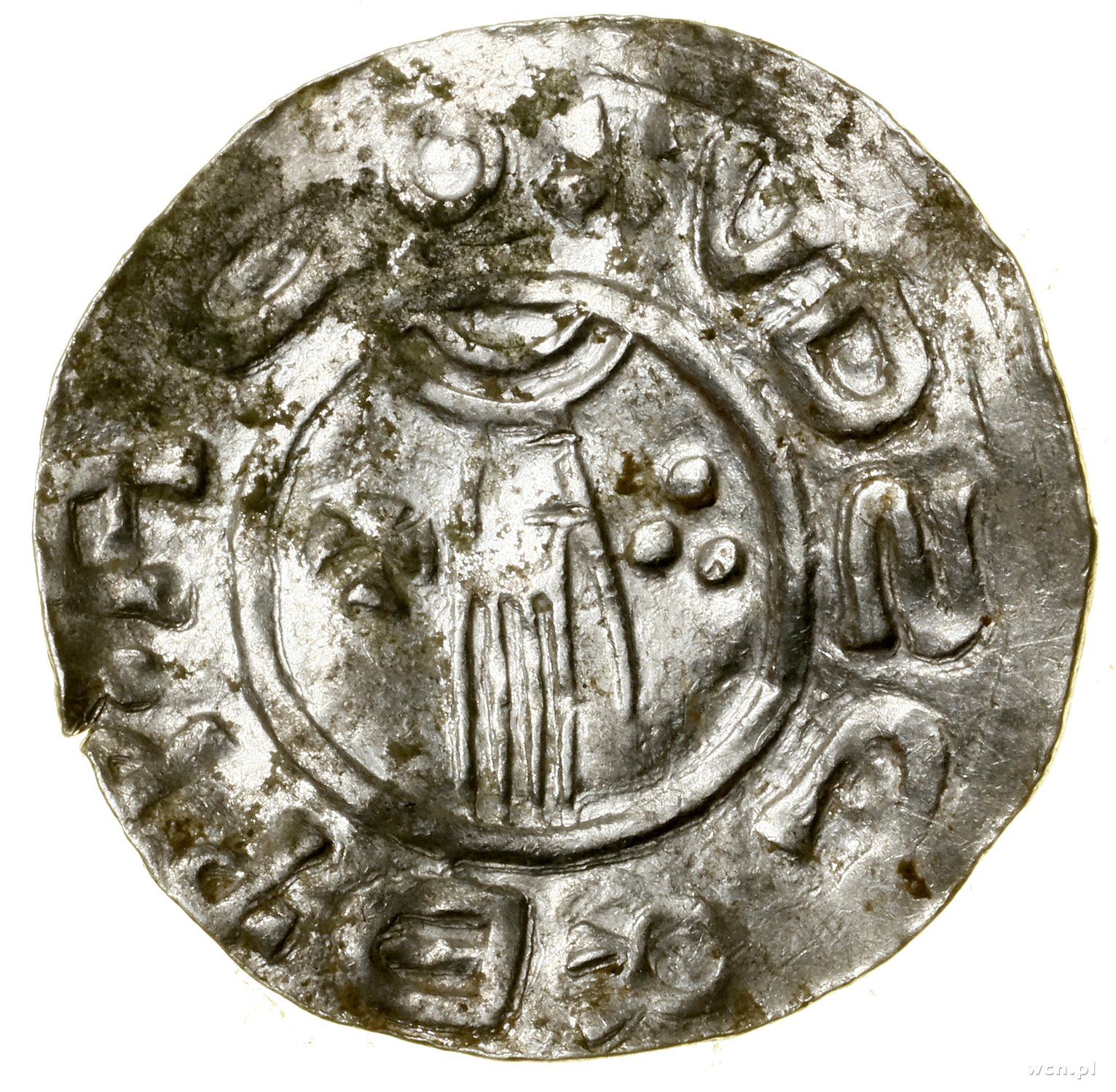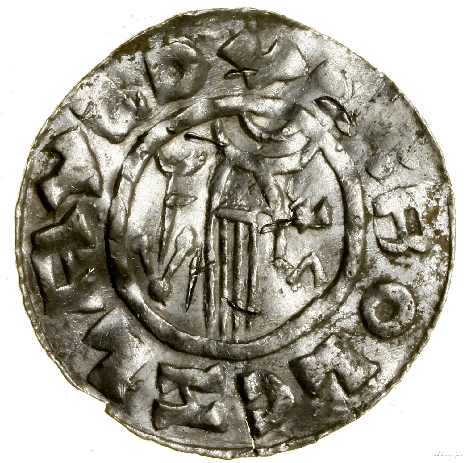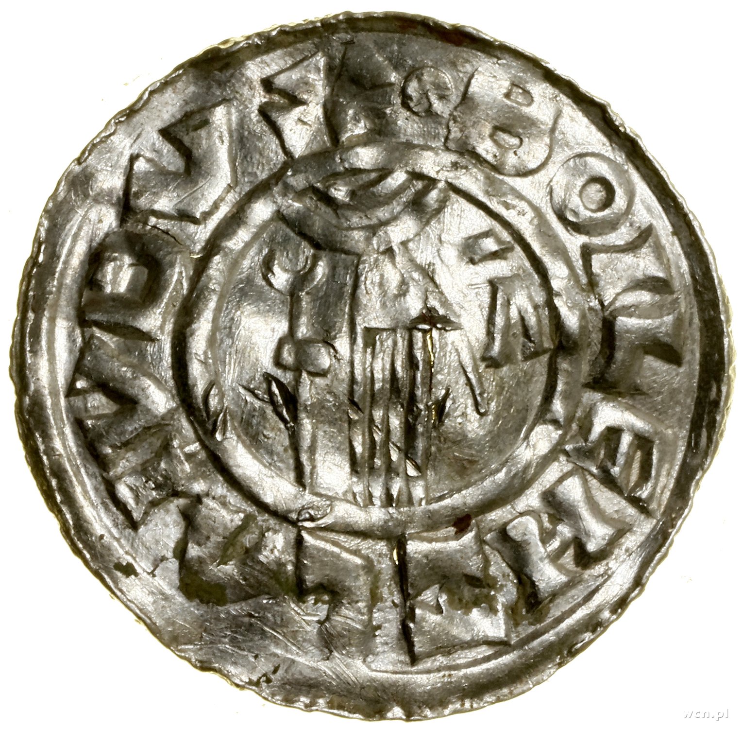 | 33 | CZECHY / Bolesław II (972–999) Denar, (972–999), Wyszehrad (Praga); Aw: Dłoń opatrzności, • BOILEHZLΛIV DVX; Rw: Dach świątyni, niżej BOZE, ISEGRΛD CIVITΛ ︙ SV; Cach 142 (podobne), Frynas B.1.34 (.. |