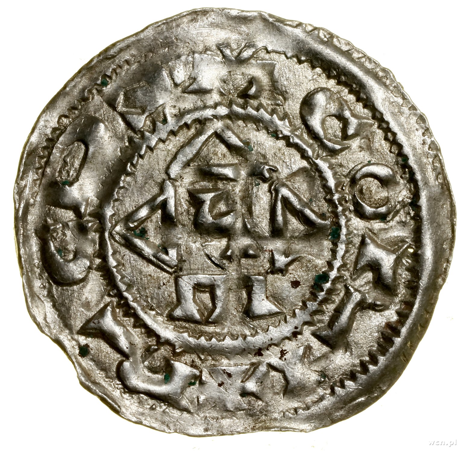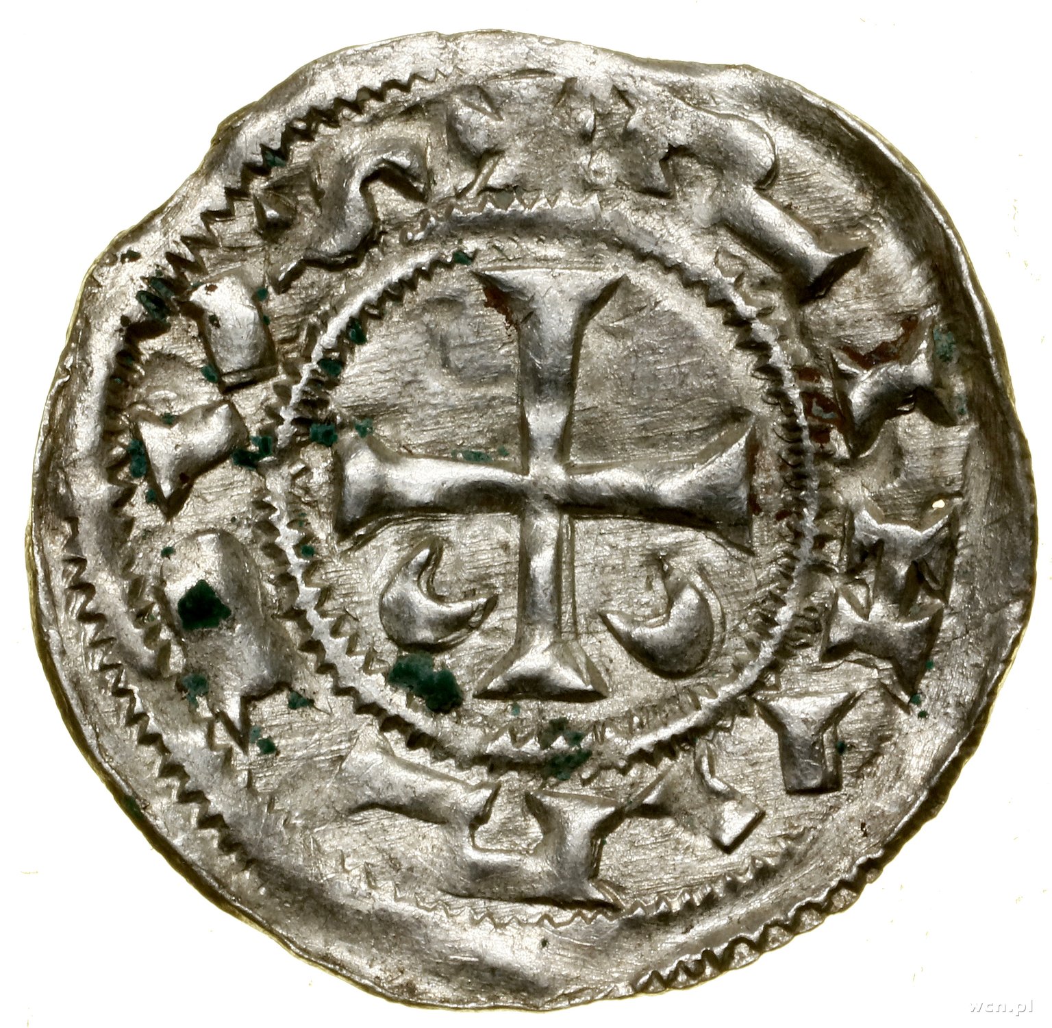 | 35 | Normandia / Ryszard I (943–996) Denar, Rouen(?); Aw: Krzyż, w dwóch przyległych kątach półksiężyce, + RIHΛRDVS; Rw: Litera S(?) otoczona przez trzy trójkąty i literę E, + RCDC M CORI; PdA 120 (podob.. |