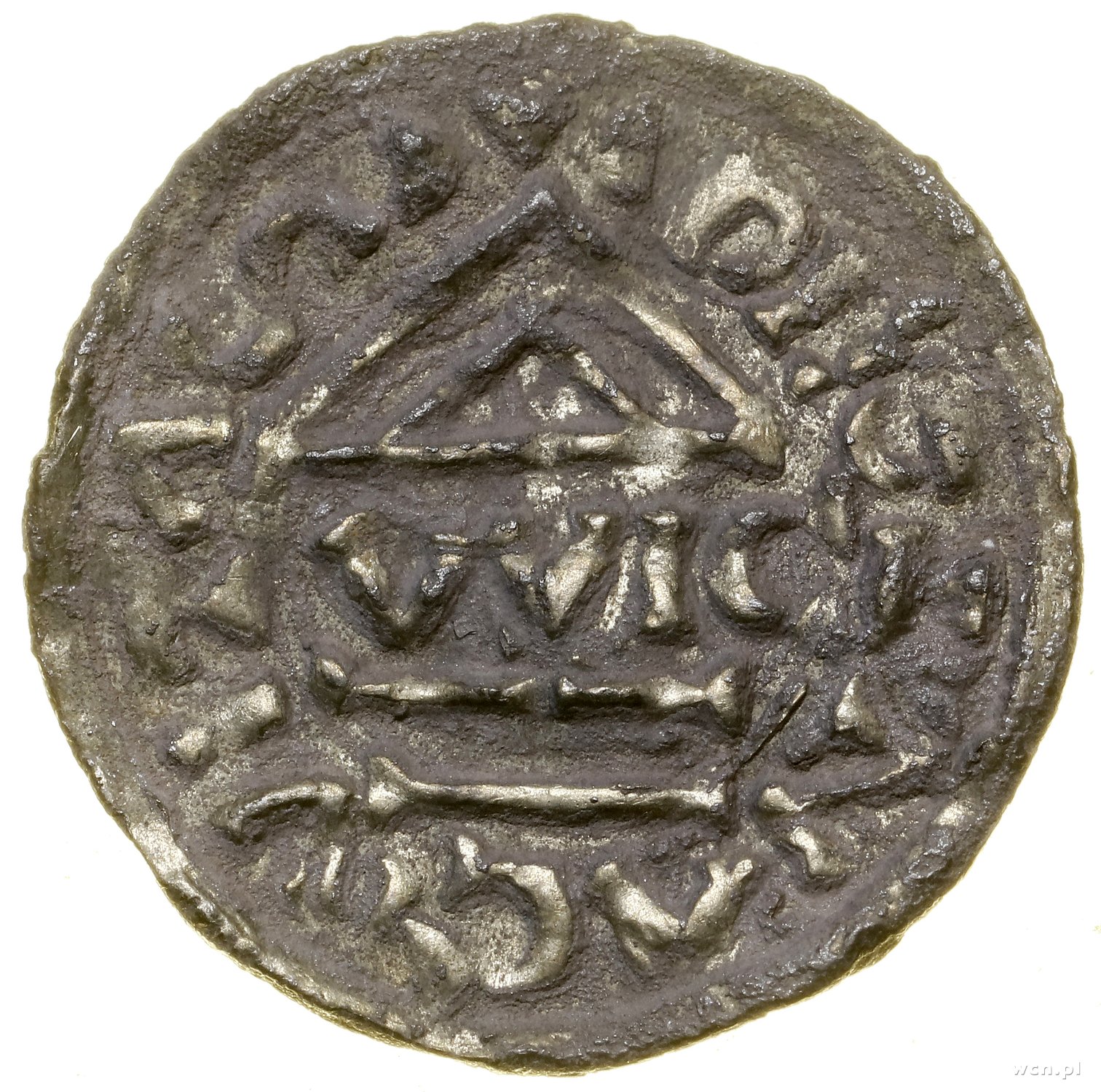 | 48 | Bawaria / ks. Henryk IV (995–1002) Denar, (995–1002), Ratyzbona, mincerz Viga; Aw: Krzyż, w kątach kulka, klin, kulka i pierścień, HENRICVS • DVX; Rw: Dach kaplicy, niżej VVIC, REGTNΛ CVITΛS; Hahn 25e2.. |