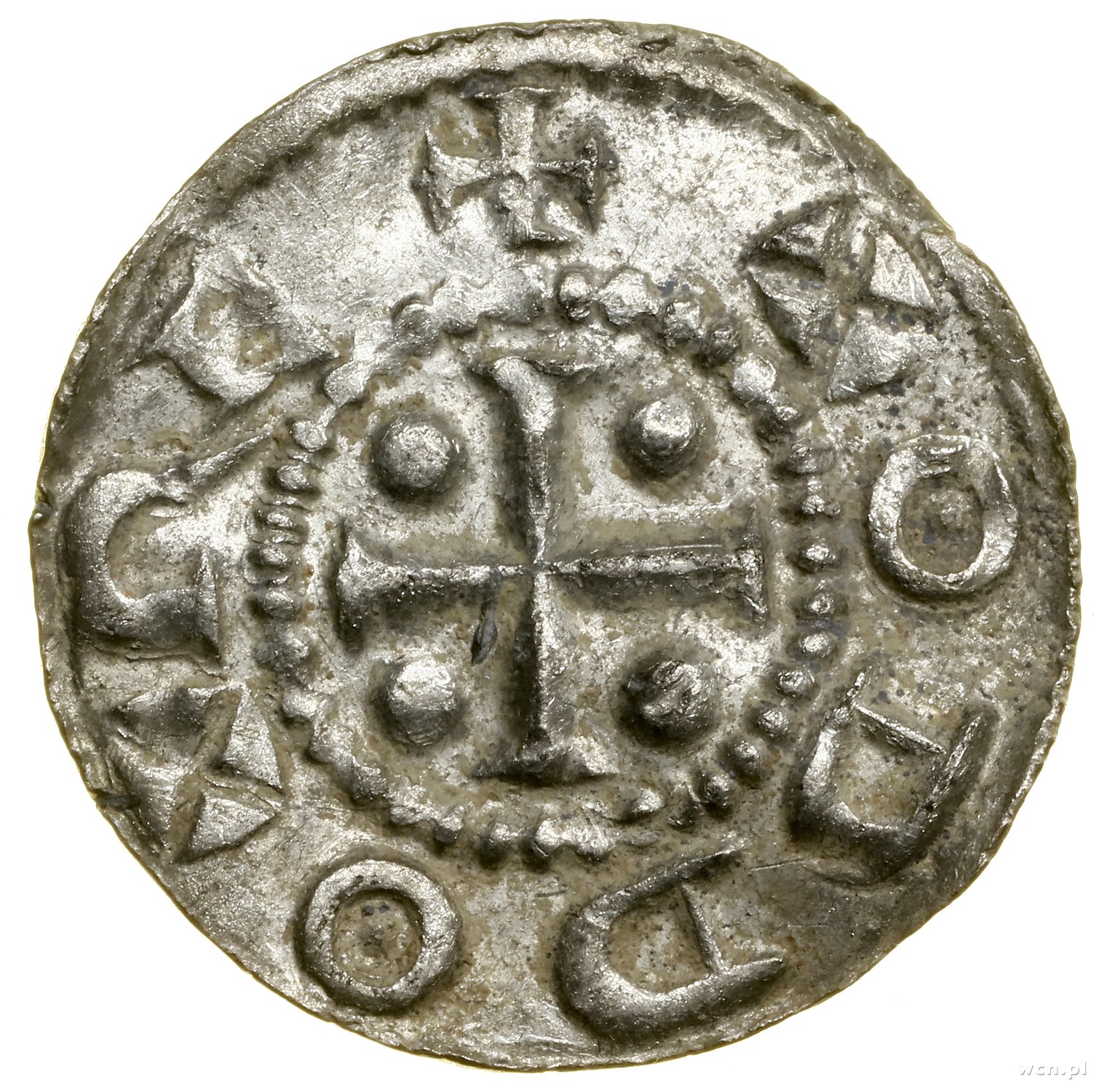 | 50 | Dortmund / Otto III (983–1002) Denar, (983–1002), Dortmund; Aw: Krzyż grecki, w każdym kącie kulka, + ODDO + RE+; Rw: THERT / + / MANNI; Dbg 743, Kluge 28; srebro, 19.2 mm, 0.97 g; lekko gięty, bar.. |
