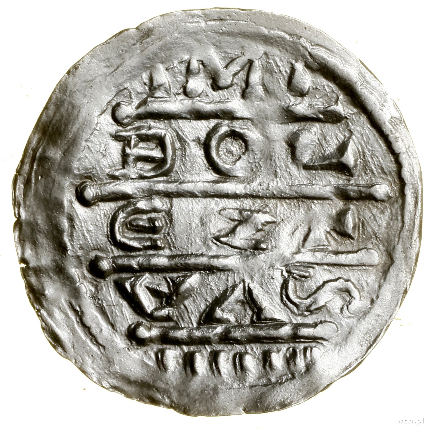 | 62 | POLSKA / Bolesław Chrobry (992–1025) Denar typu Princes Polonie (odmiana zbarbaryzowana), (po 1000); Aw: Ptak zwrócony w prawo z rozpostartym ogonem i trzema łapami, w otoku fragmenty zbarbaryzowanego na.. |