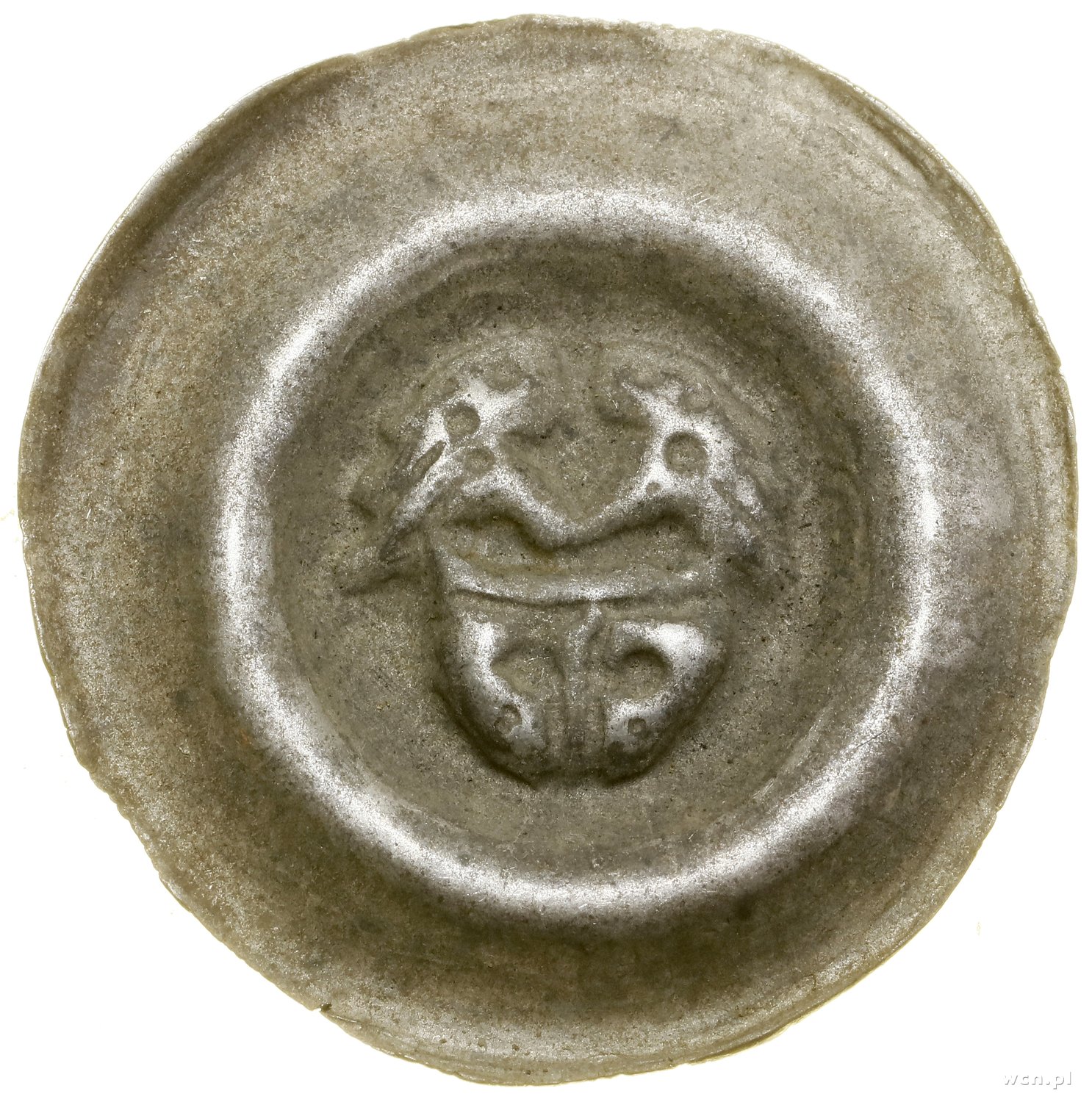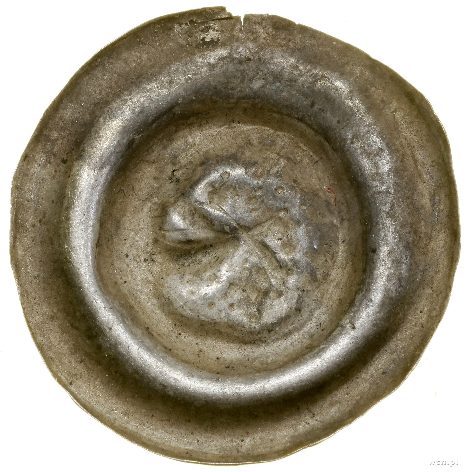 | 81 | ŚLĄSK / Dolny Śląsk Brakteat szeroki, II połowa XIII w.; Popiersie konia w lewo; Fbg 759, FbgCDS 144; srebro, 25.1 mm, 0.55 g; patyna, ładnie zachowany. |